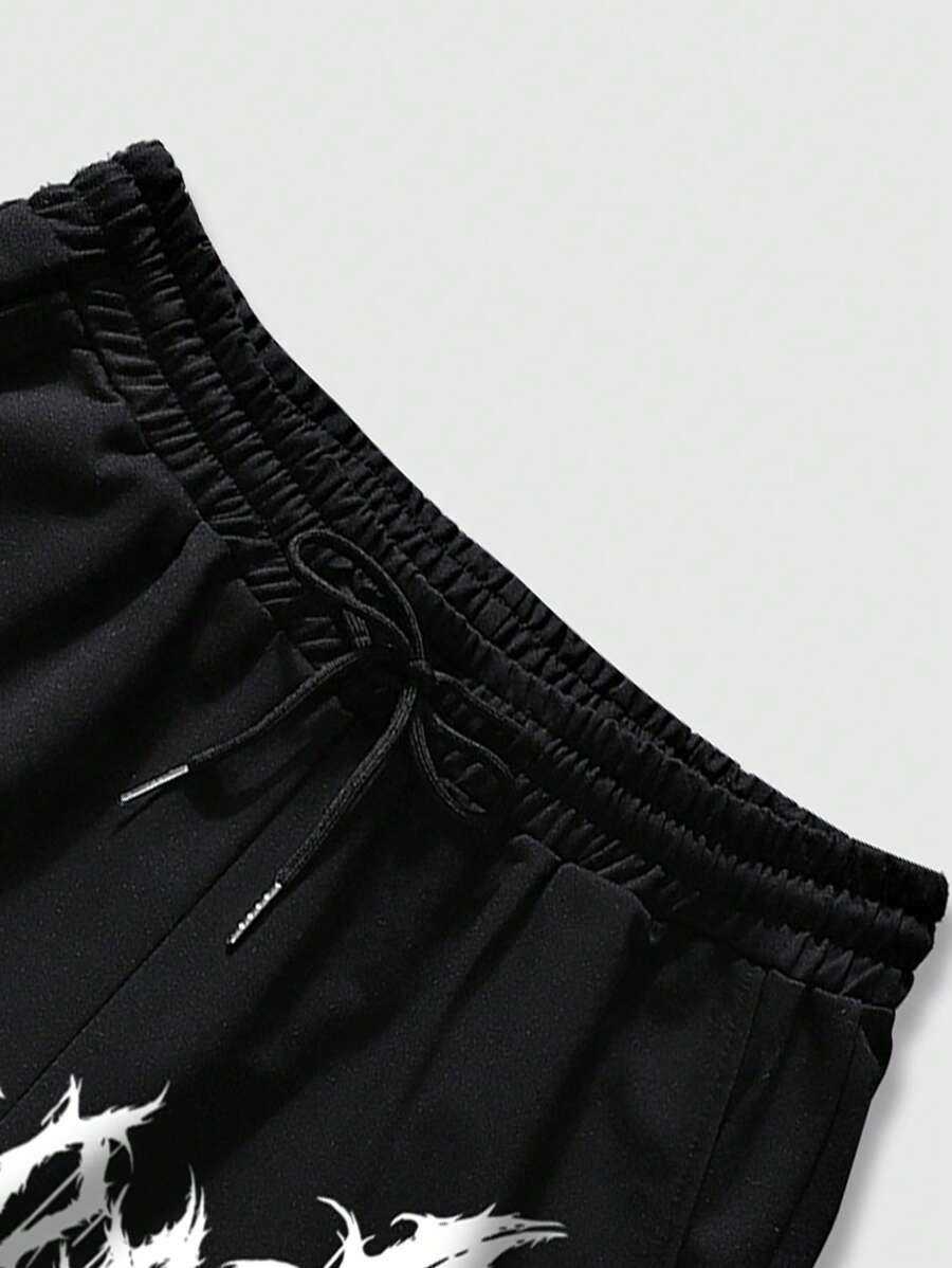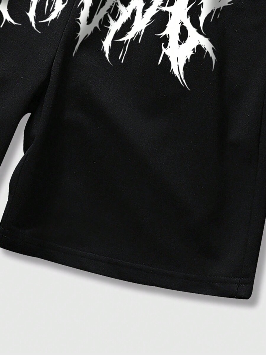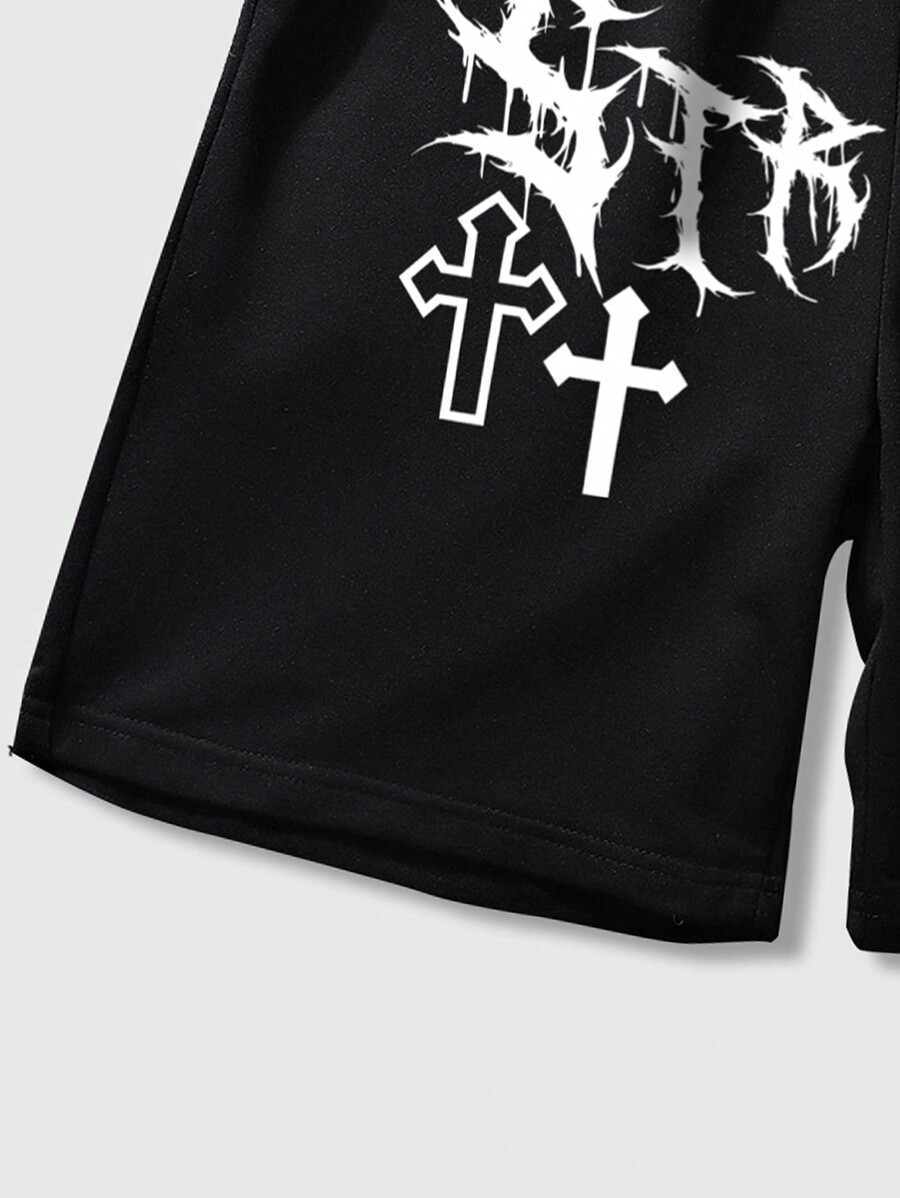 Goth Men Cross Letter Graphic Drawstring Waist Shorts