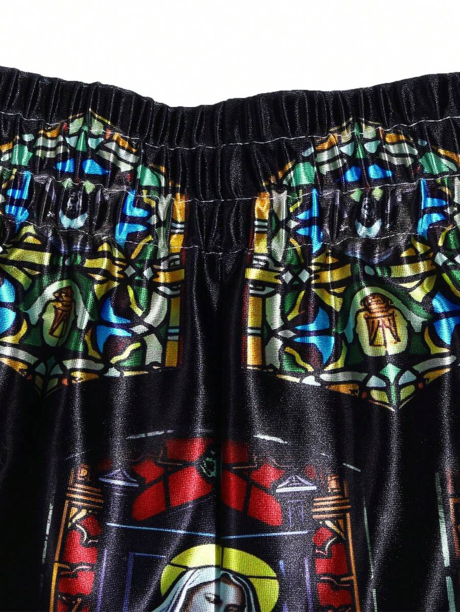 Street Life Men Dark Print Pattern Boxing Sports Shorts