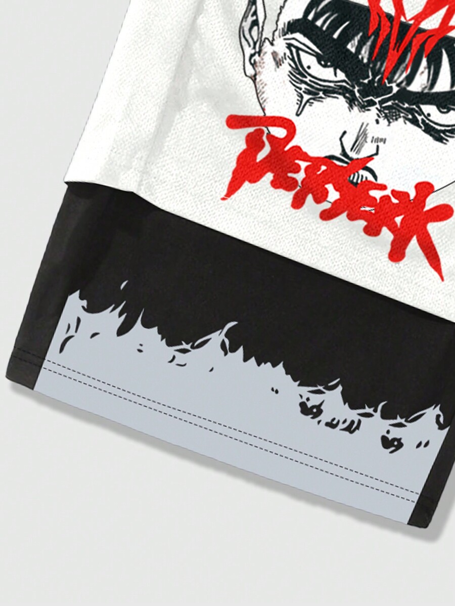 Men Gothic Print Mock-Layered Basketball Shorts For Everyday Wear, Spring/Summer