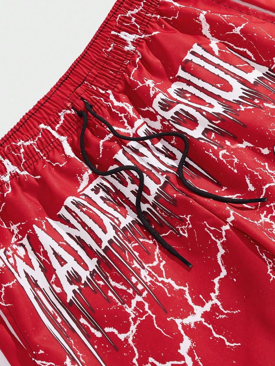 Goth Men Letter & Skeleton Print Drawstring Waist Shorts, School