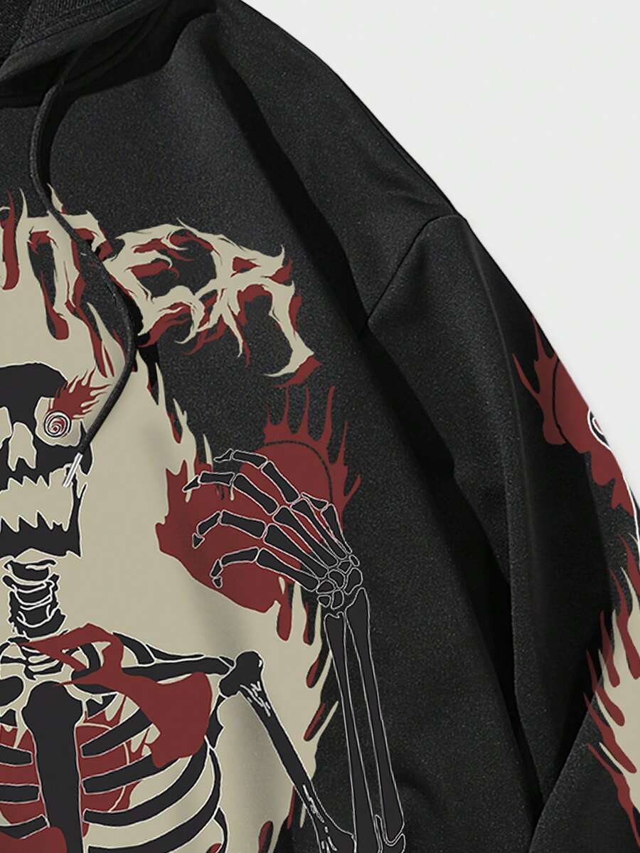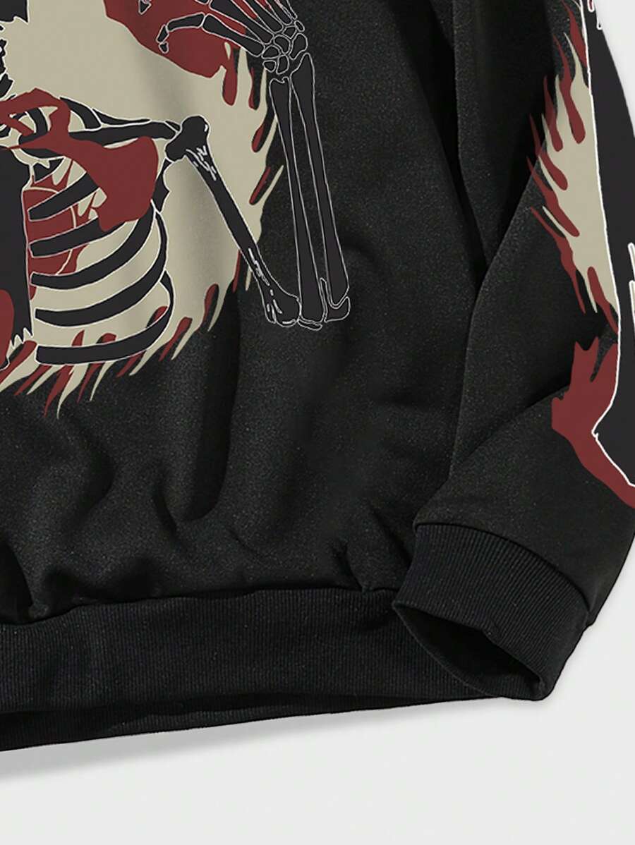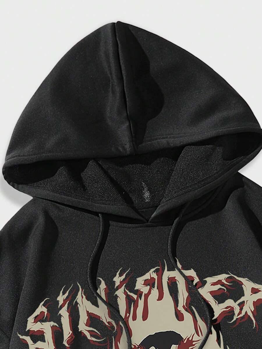 Grunge Punk Men Letter & Skull Print Drawstring Hoodie