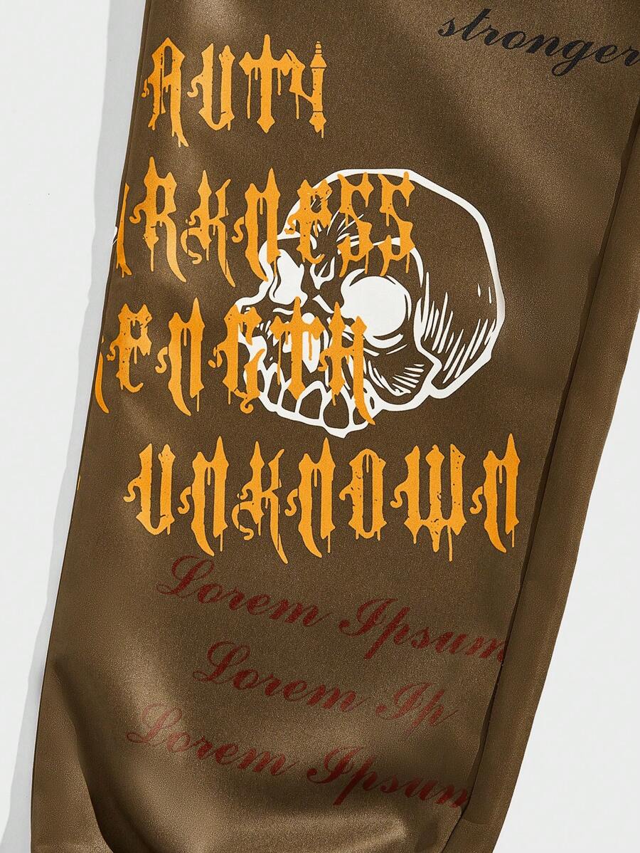 Goth Men Skull & Letter Print Drawstring Long Pants