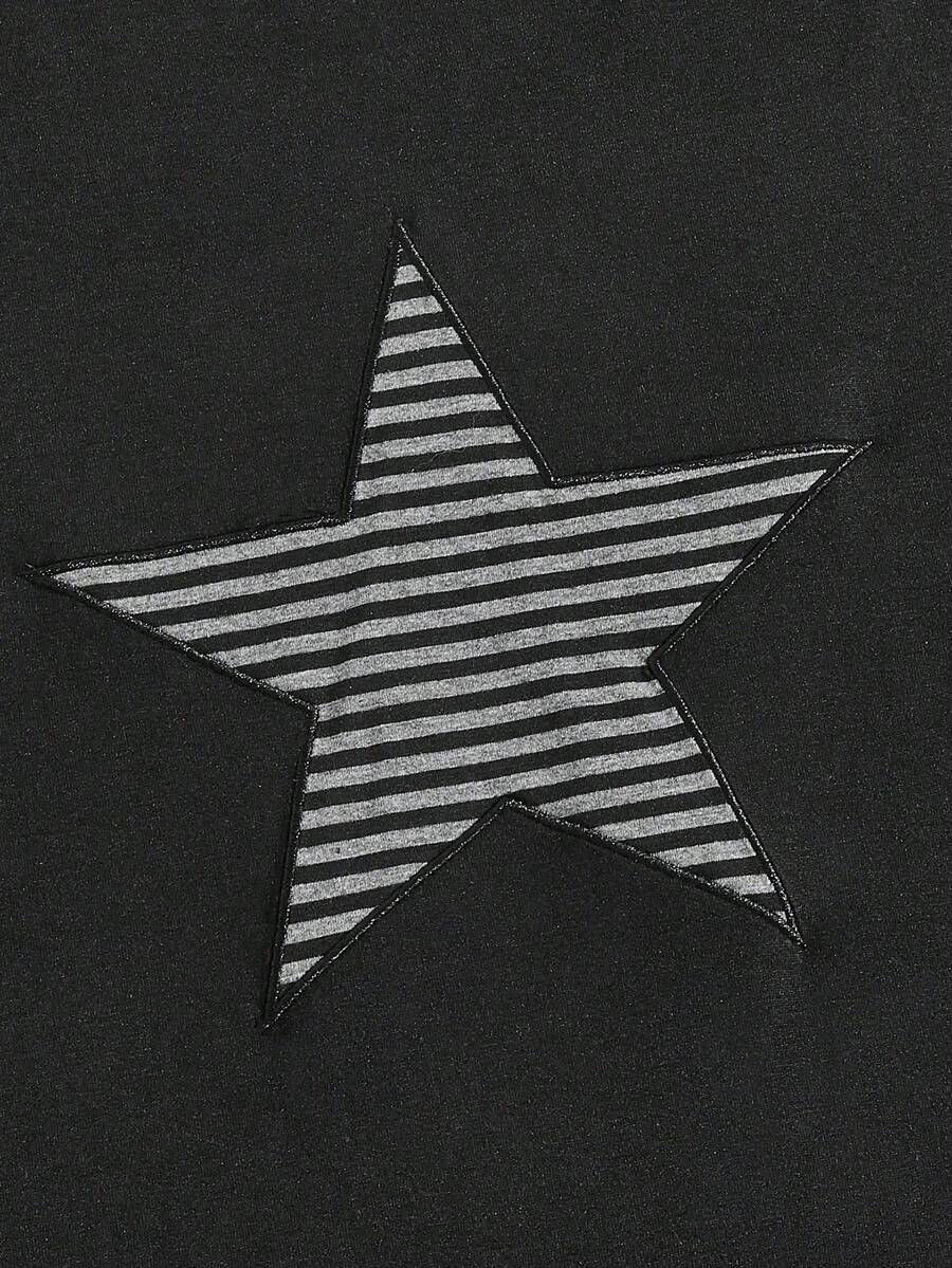 Goth Men Striped & Star Print 2 In 1 Tee, School, For Fall