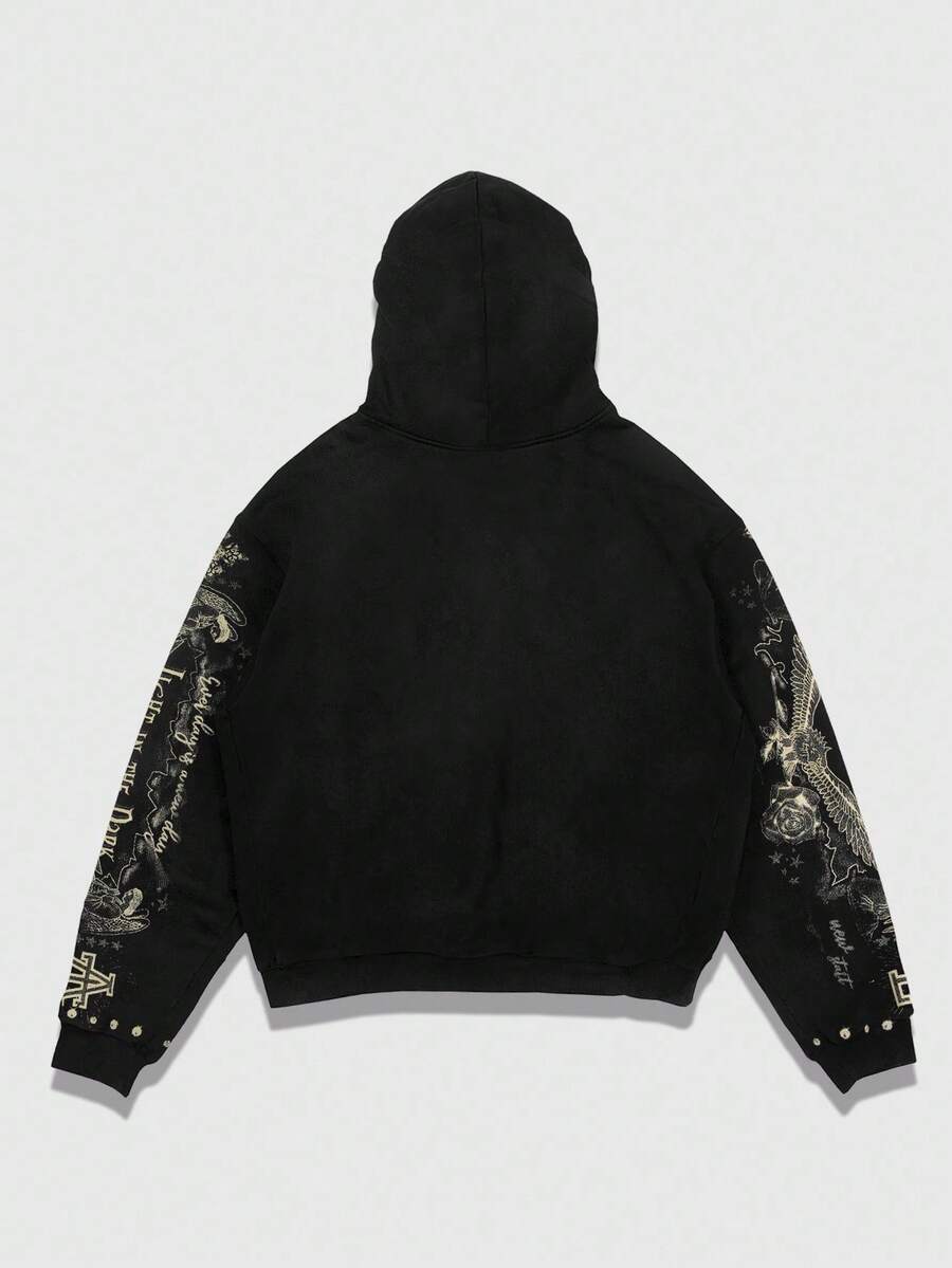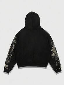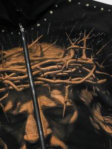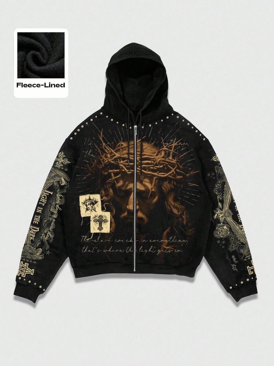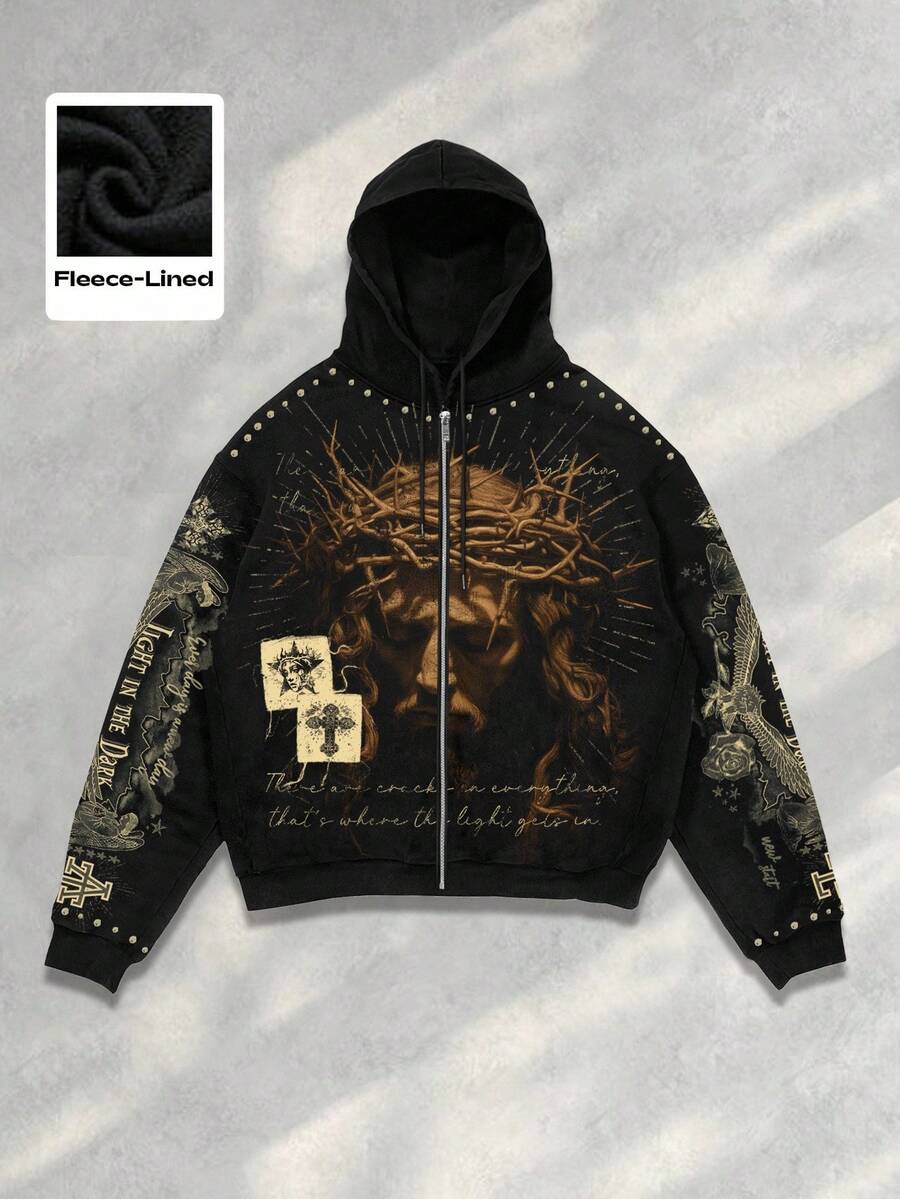 Goth Men's Autumn Slogan & Figure Jesus Print Long Sleeve Casual Drawstring Zip-Up Hoodie Sweatshirt