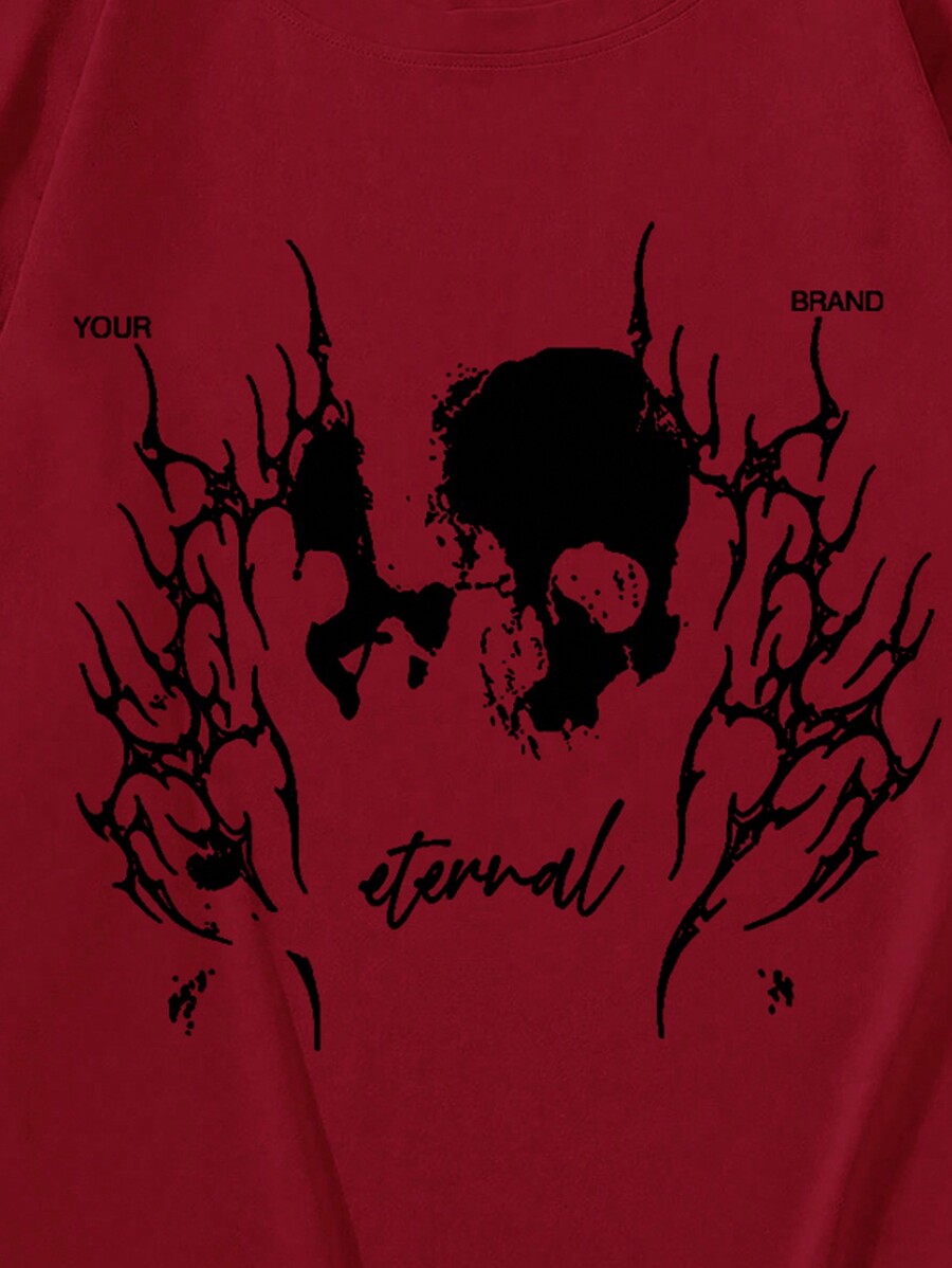 Goth Men's Casual Crew Neck Skeleton Print Long Sleeve T-Shirt, Autumn