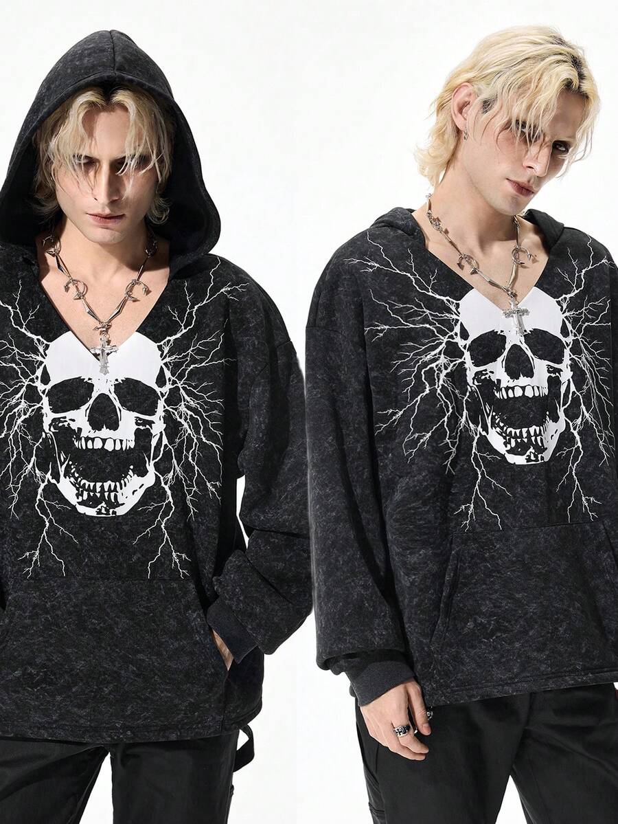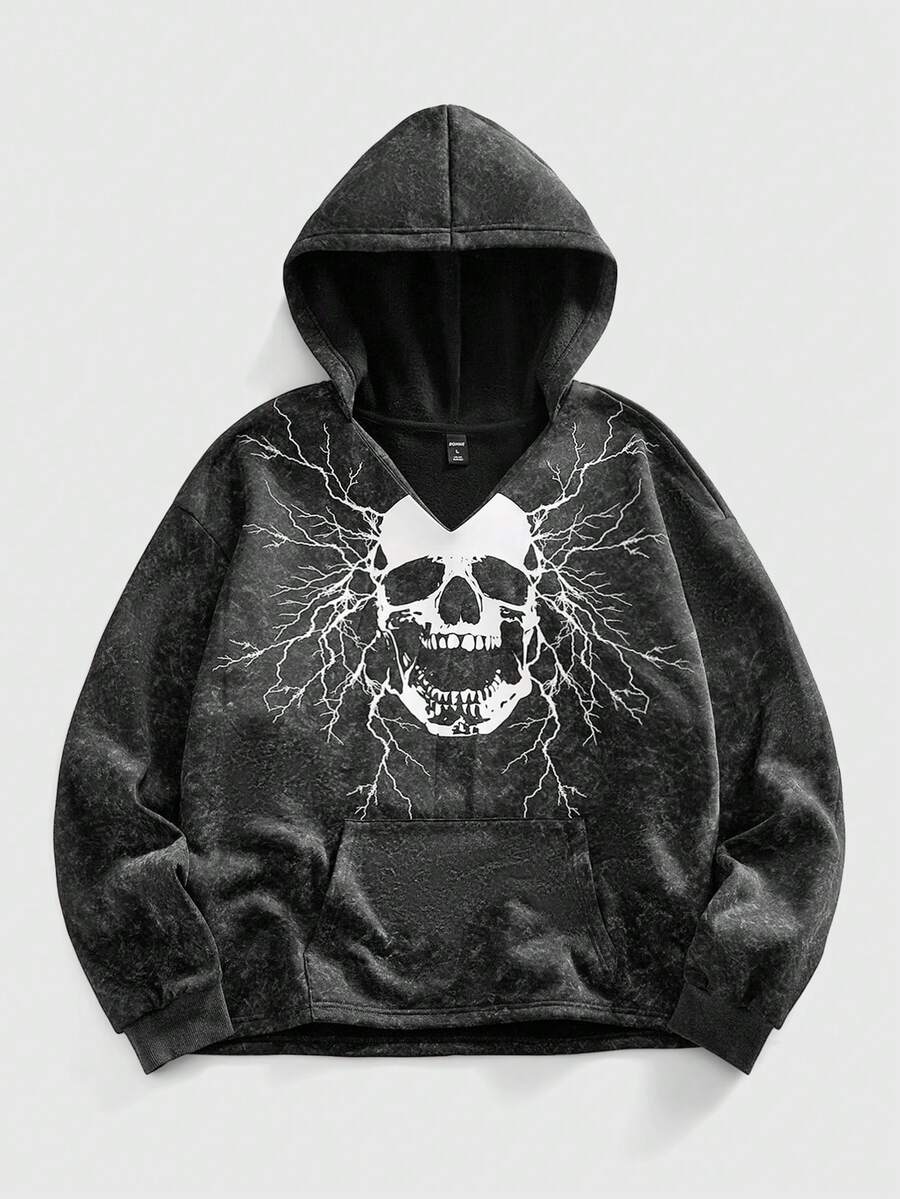 Goth Men's Dark Skull Print Casual Pullover Hoodie Sweatshirt