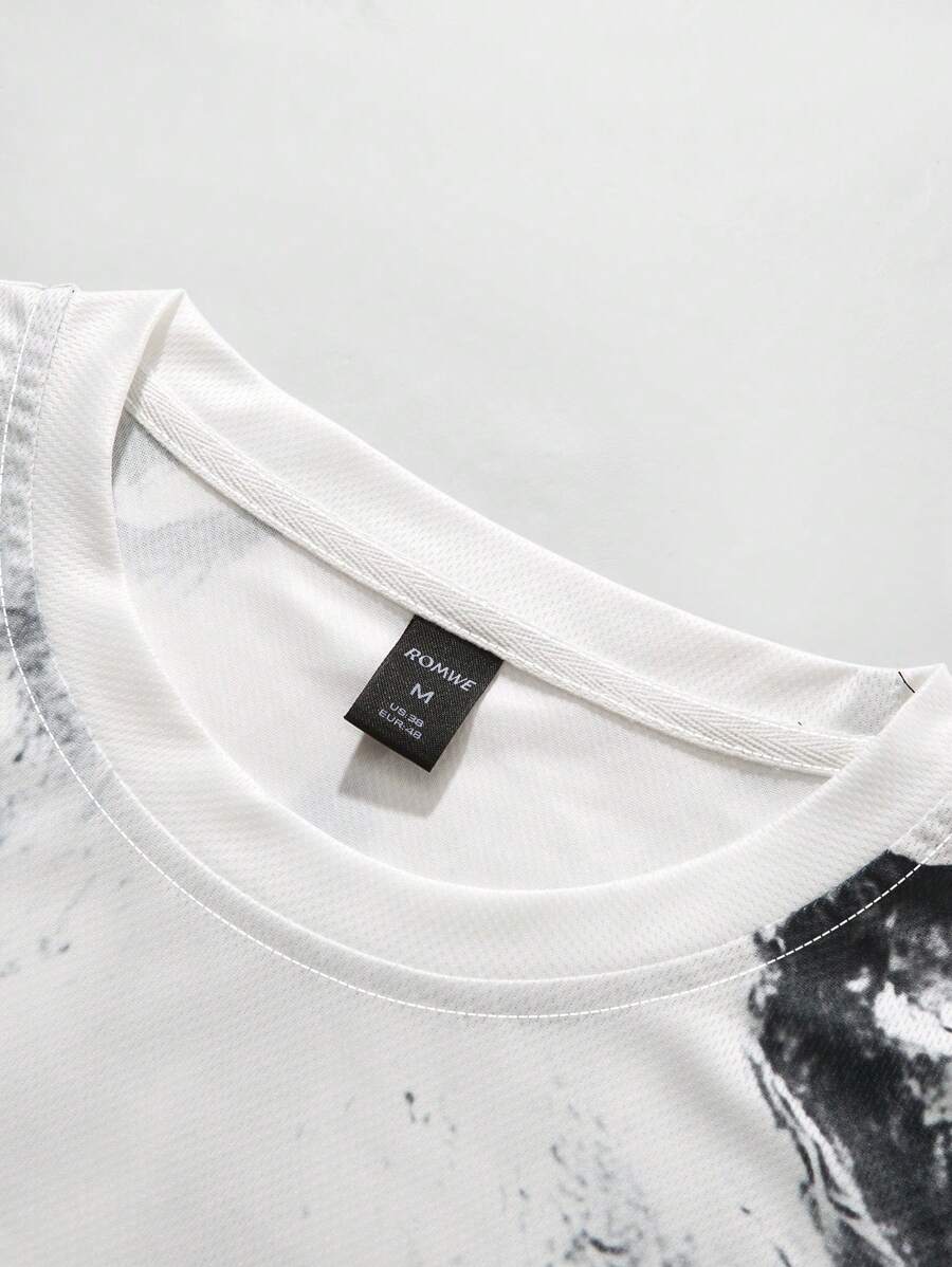 Men's Gothic Letter Print Short Sleeve T-Shirt, Suitable For Everyday Wear In Spring And Summer