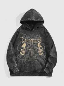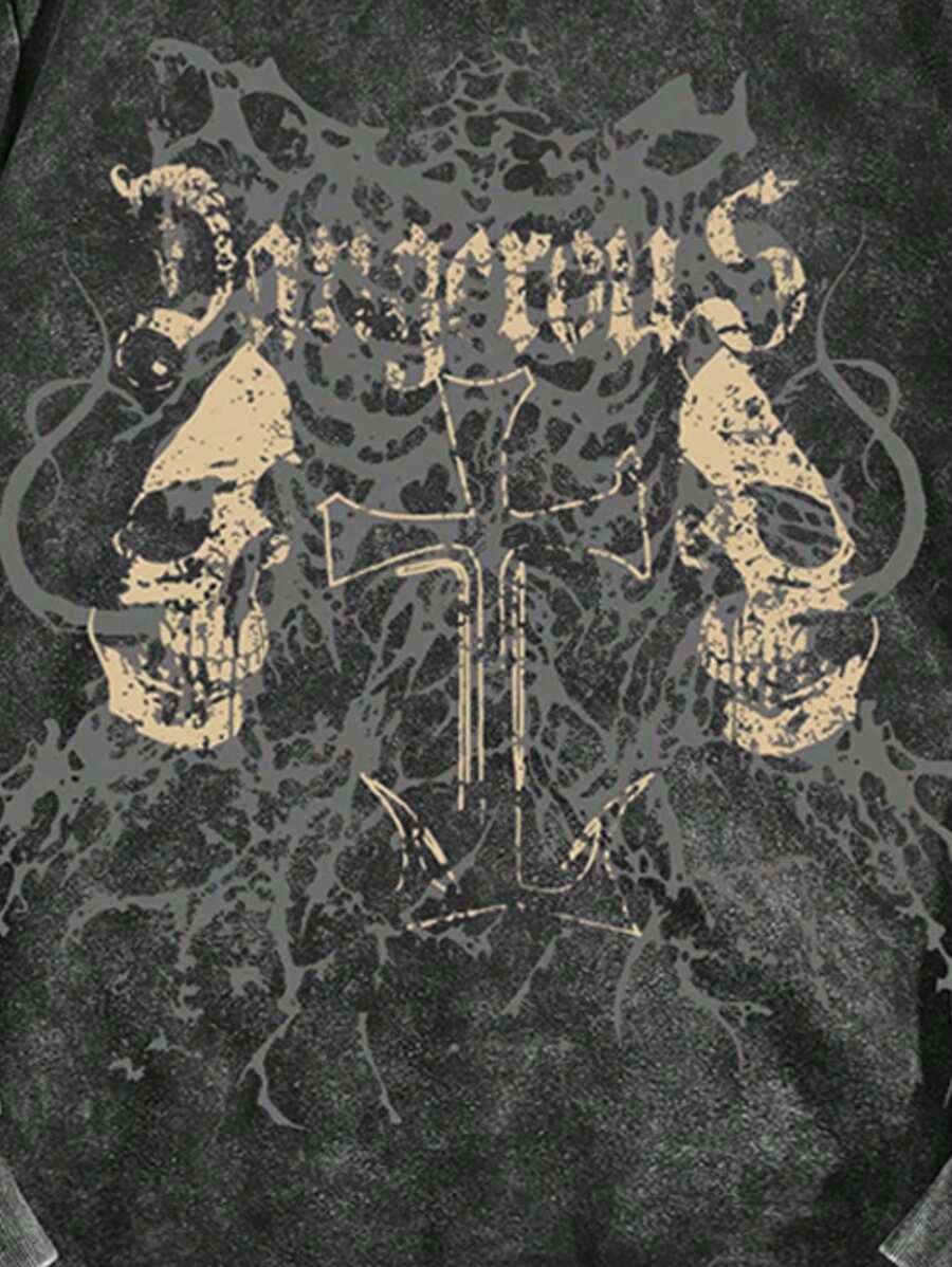 Goth Men's Loose Fit Hooded Cross Pattern Long Sleeve Casual Hoodie, School