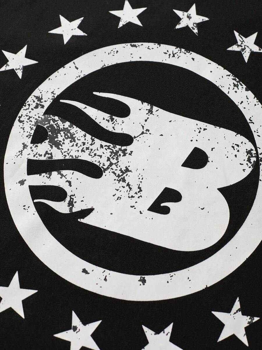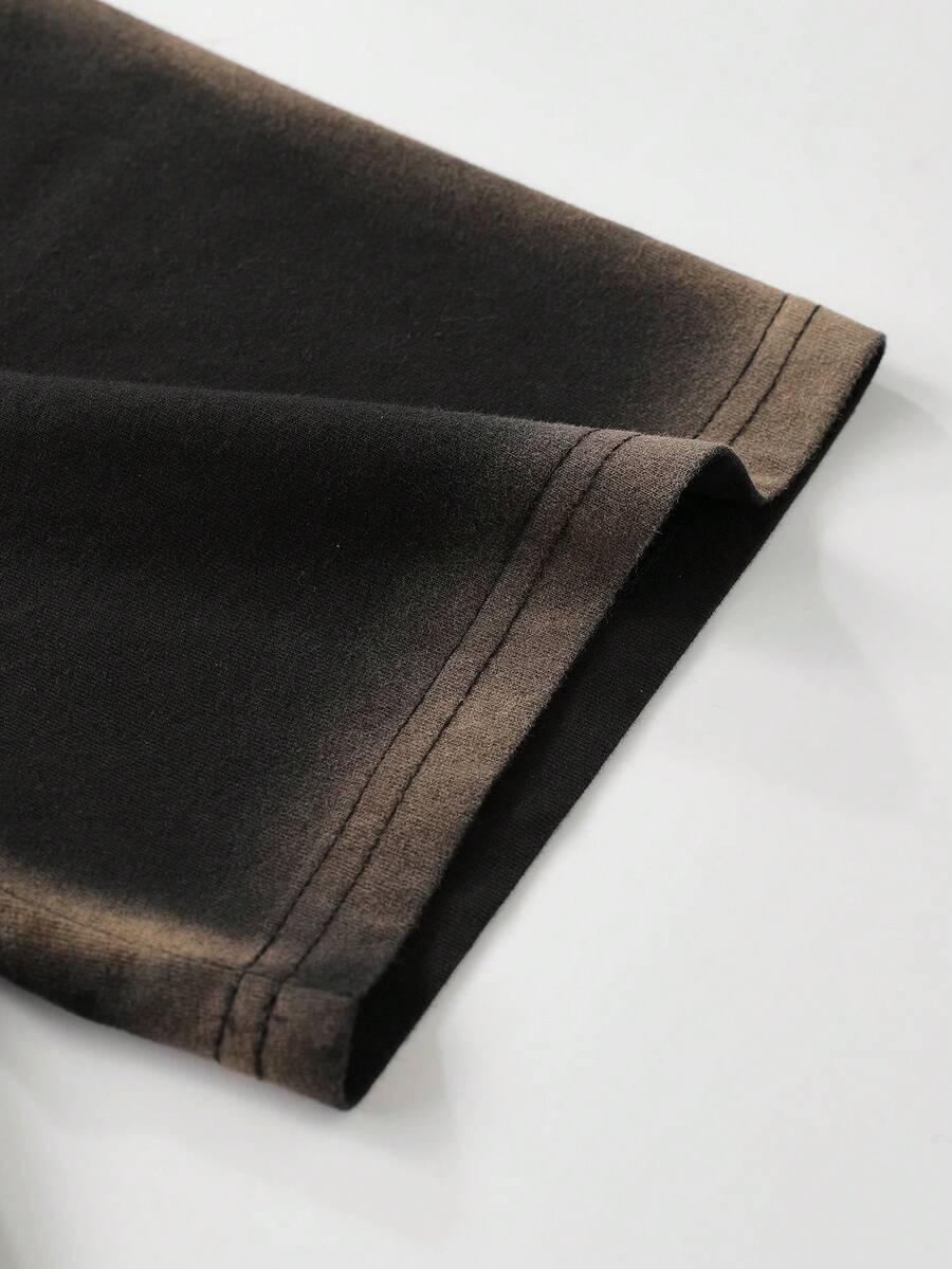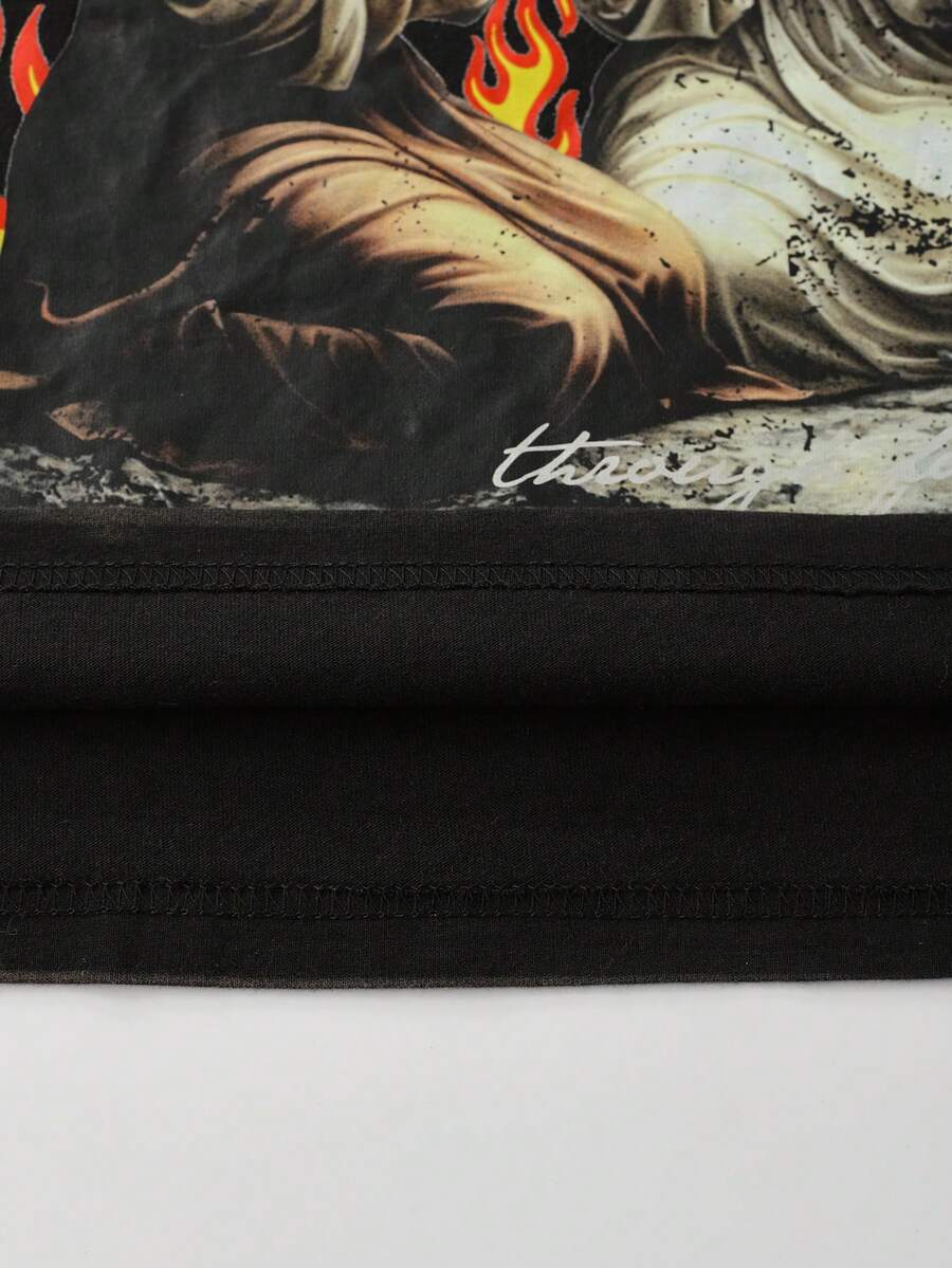Street Life Men's Religious Loose Fit T-Shirt With Spray-Painted Border Lines & Letter/Figure Print