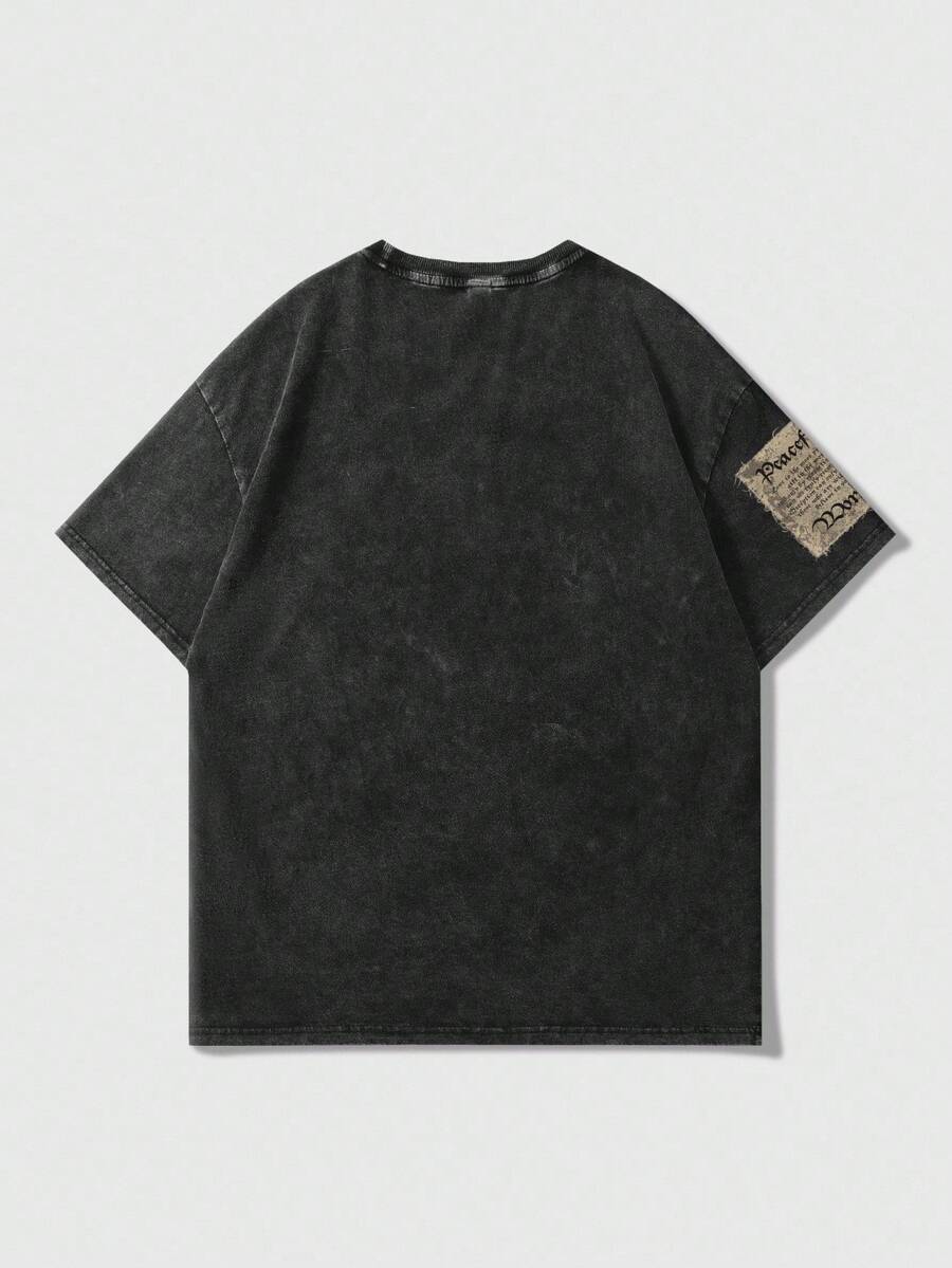 Goth Men's Retro Anime Acid-Washed Crew Neck Short Sleeve T-Shirt, Suitable For Spring And Summer