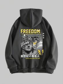 Goth Men's Sculpture Print Hooded Zipper Sweatshirt