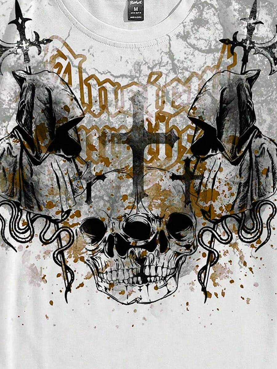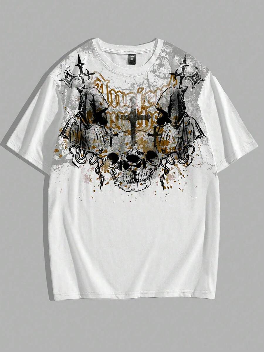 Goth Men's Skull Cross Print Round Neck Short Sleeve T-Shirt