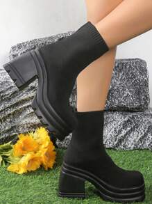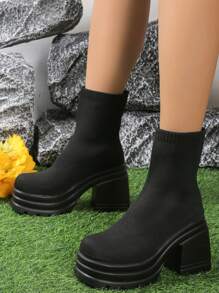 Goth Minimalist Slip On Sock Boots