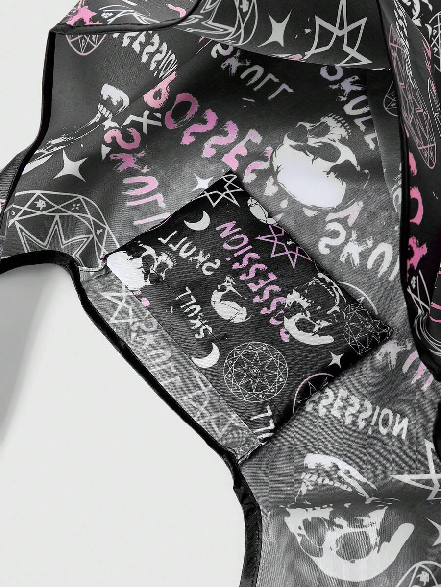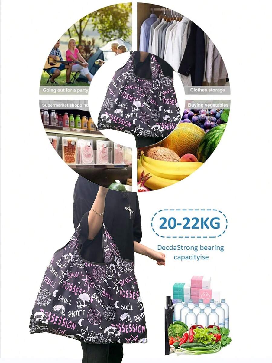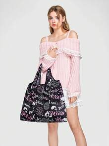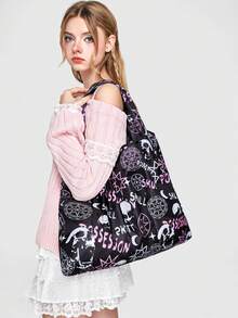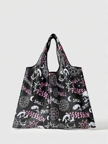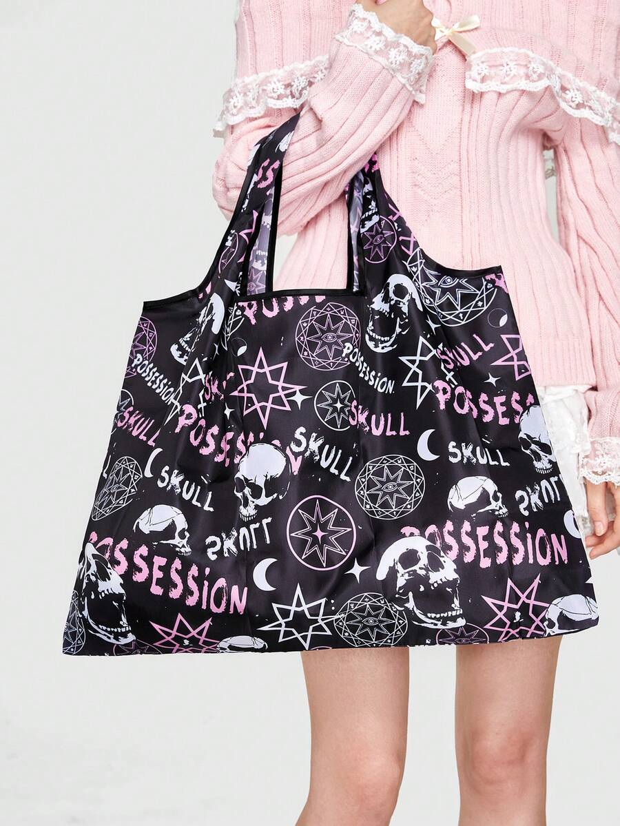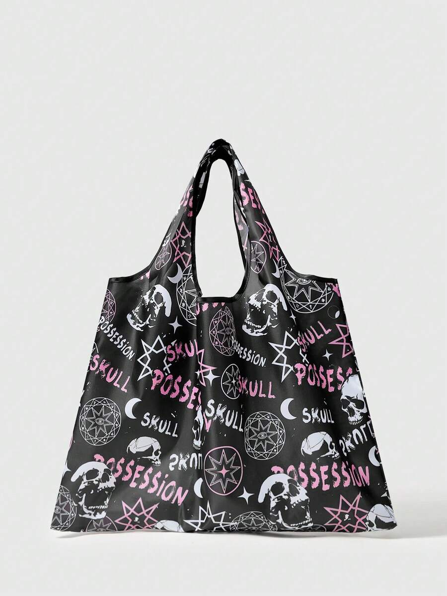 Goth Oversized Shopper Bag Dark Letter Skull Graphic For Shopping