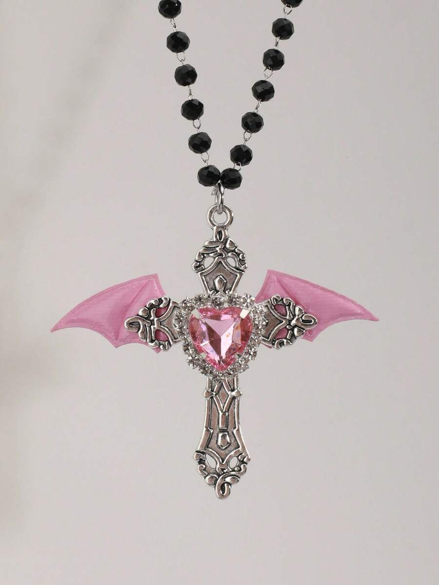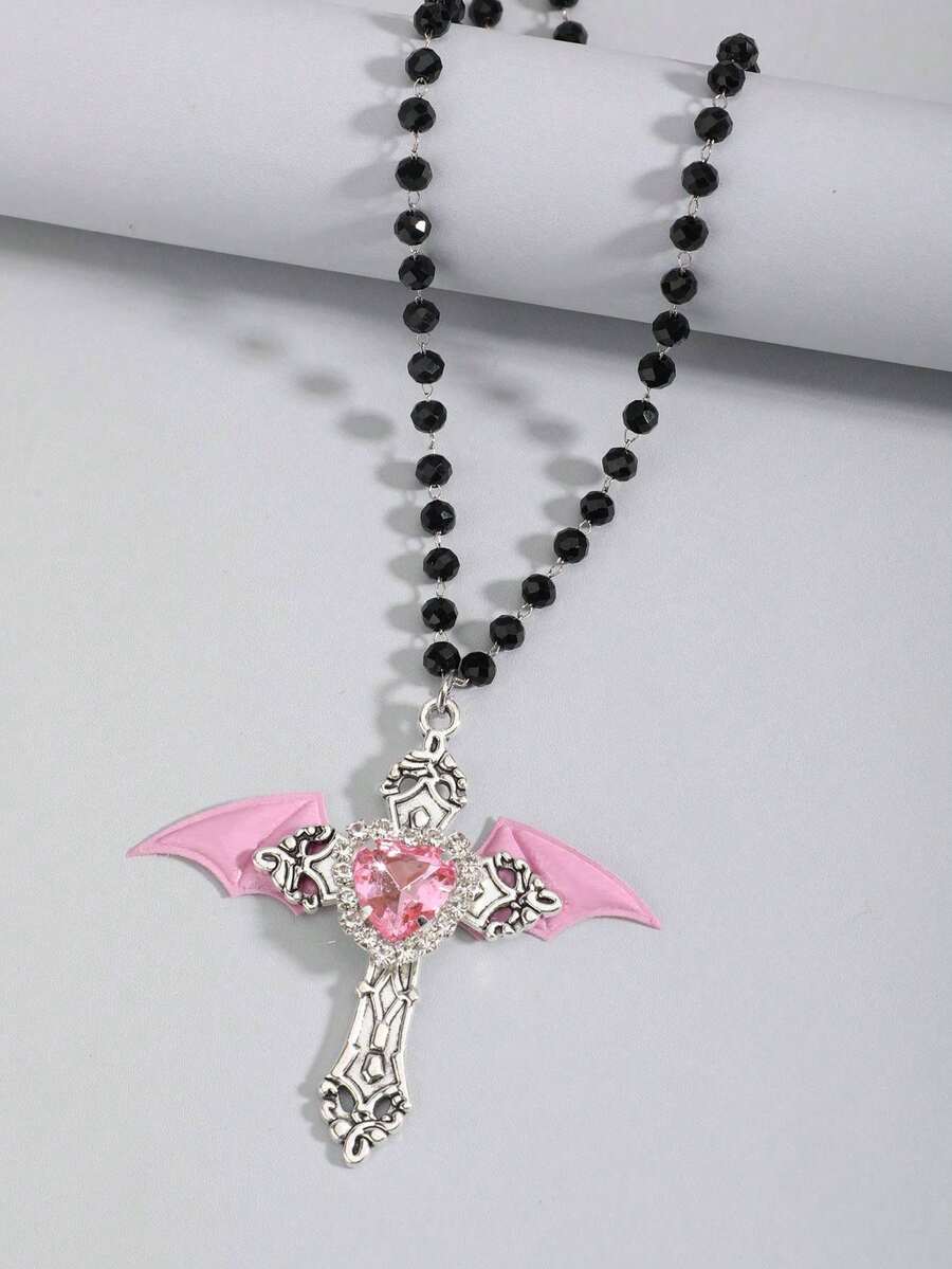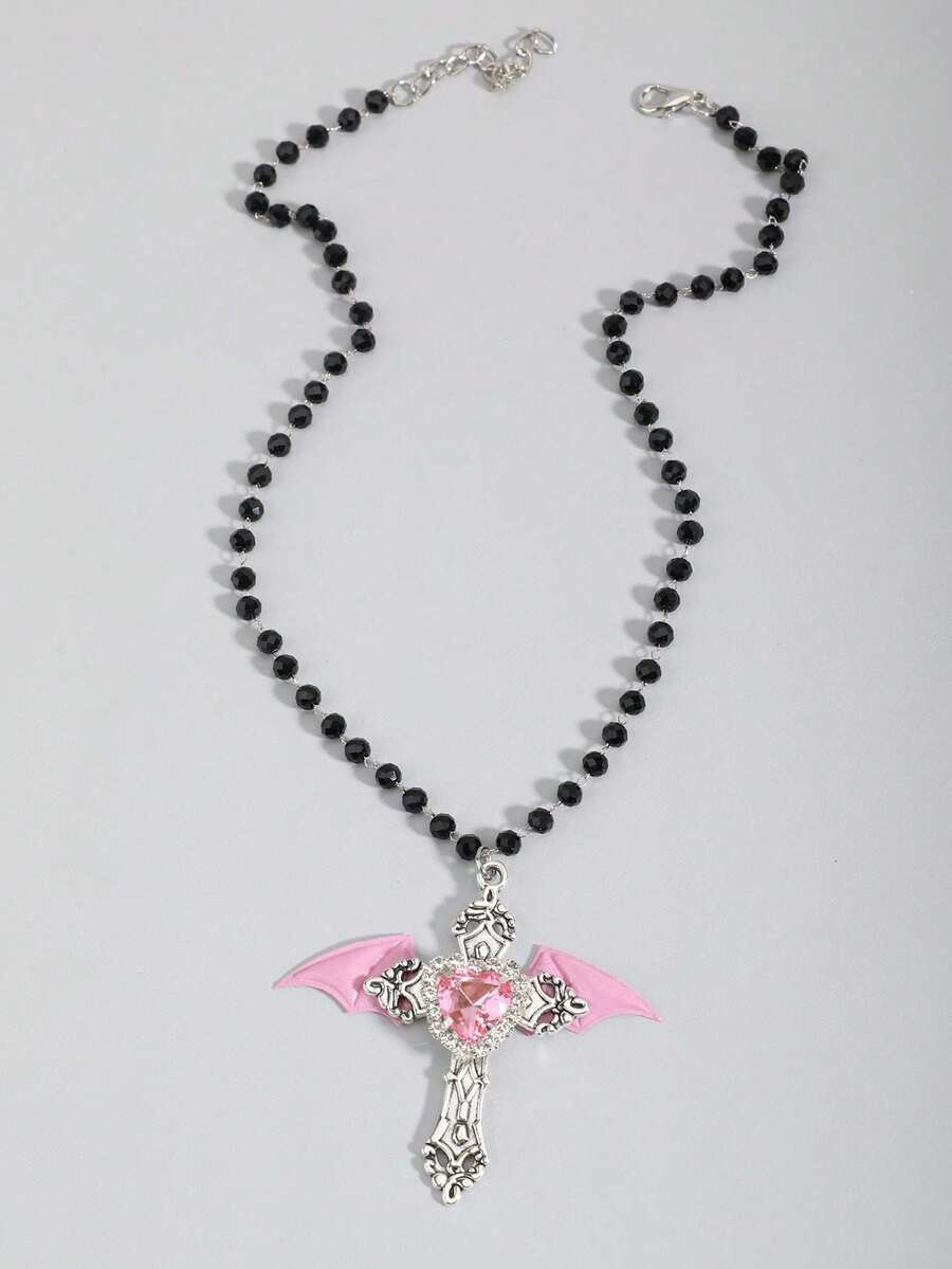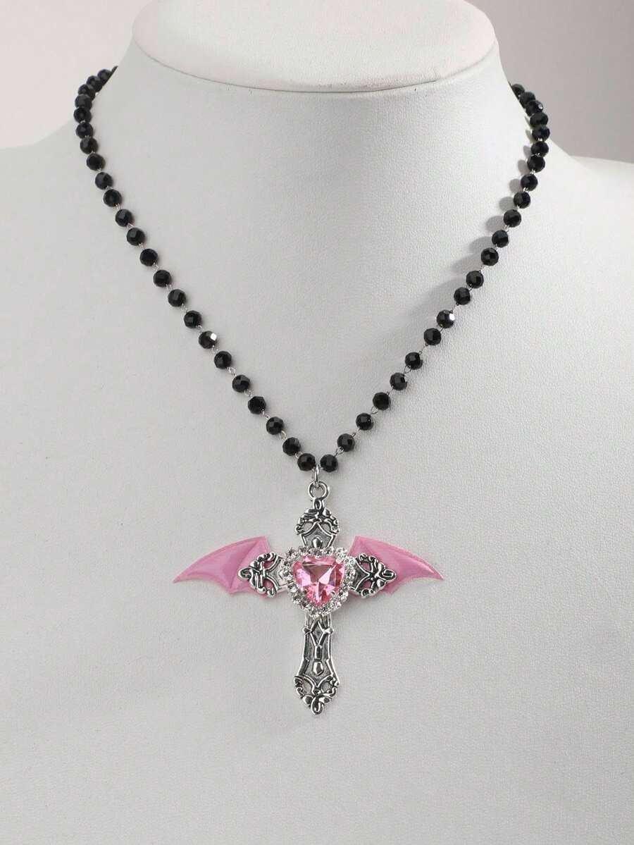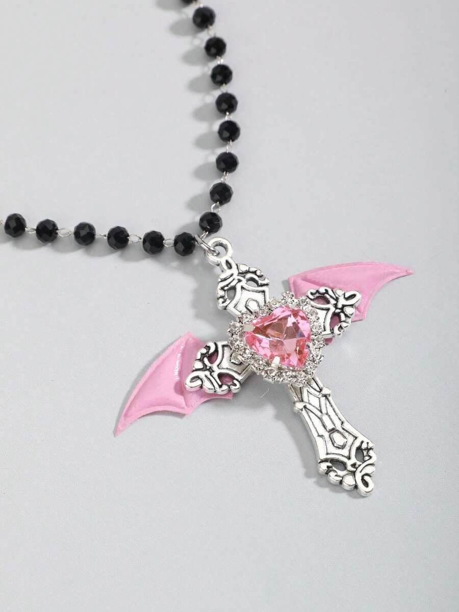 Goth Pearl Necklace With Creative Edgy Dark Style Cross Pendant Choker