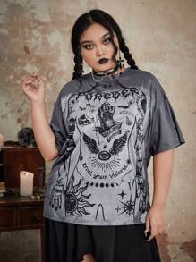 Goth Plus Figure Graphic Drop Shoulder Tee