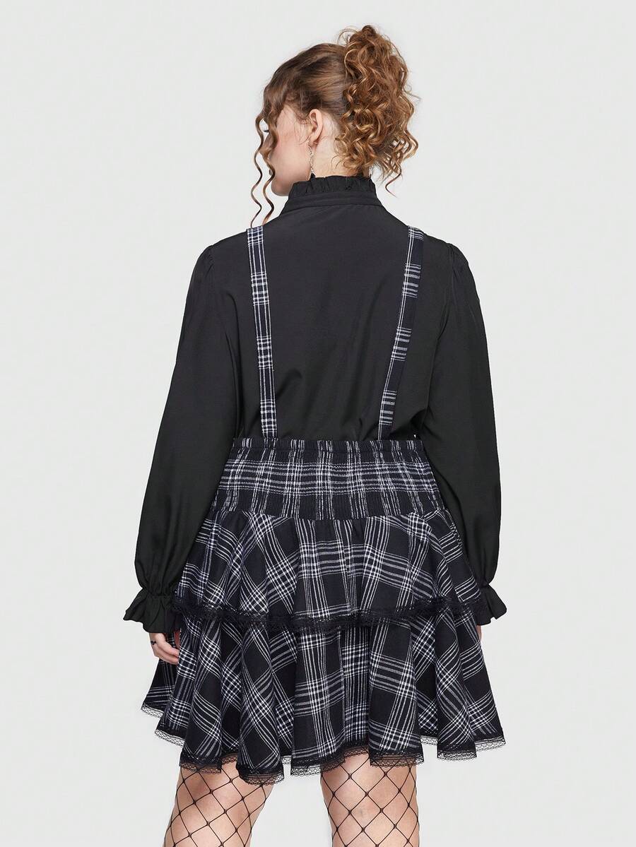 Goth Plus Plaid Print Layered Ruffle Hem Suspender Skirt Without Shirt
