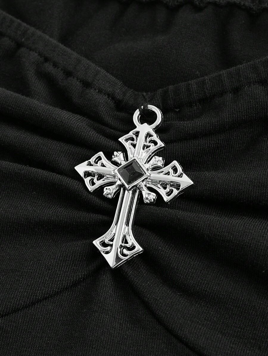 Plus Size Gothic Style Solid Color Halter Crisscross Decor Bodycon Waist Top