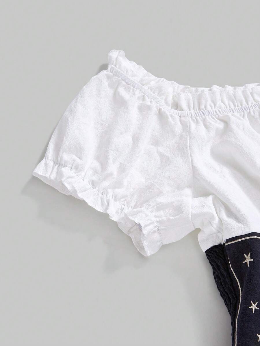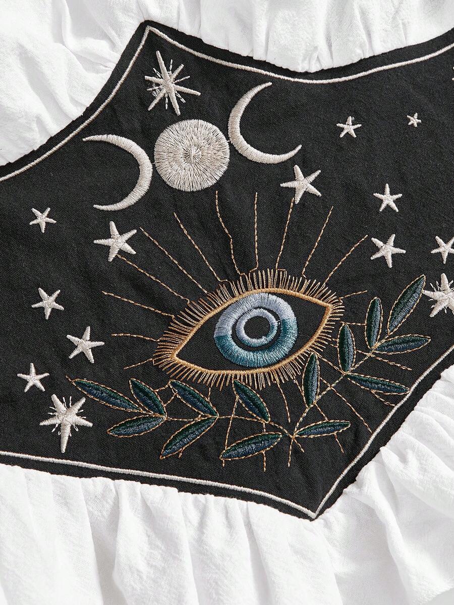 Goth Plus Size One Shoulder Vintage Star & Moon Mystical Eye Embroidery Patchwork Waist Drawstring Shirt