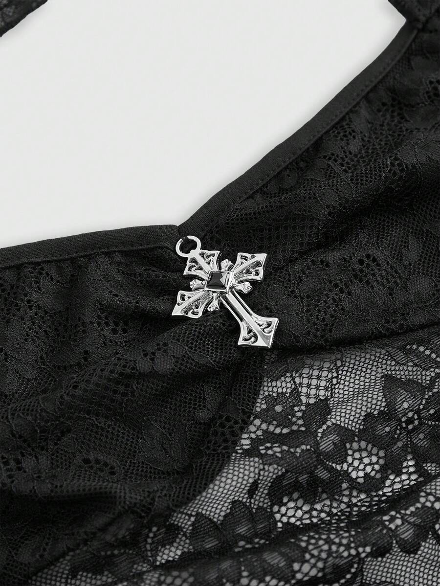 Goth Plus Size Sexy Lace Hollow Cross Backless Blouse