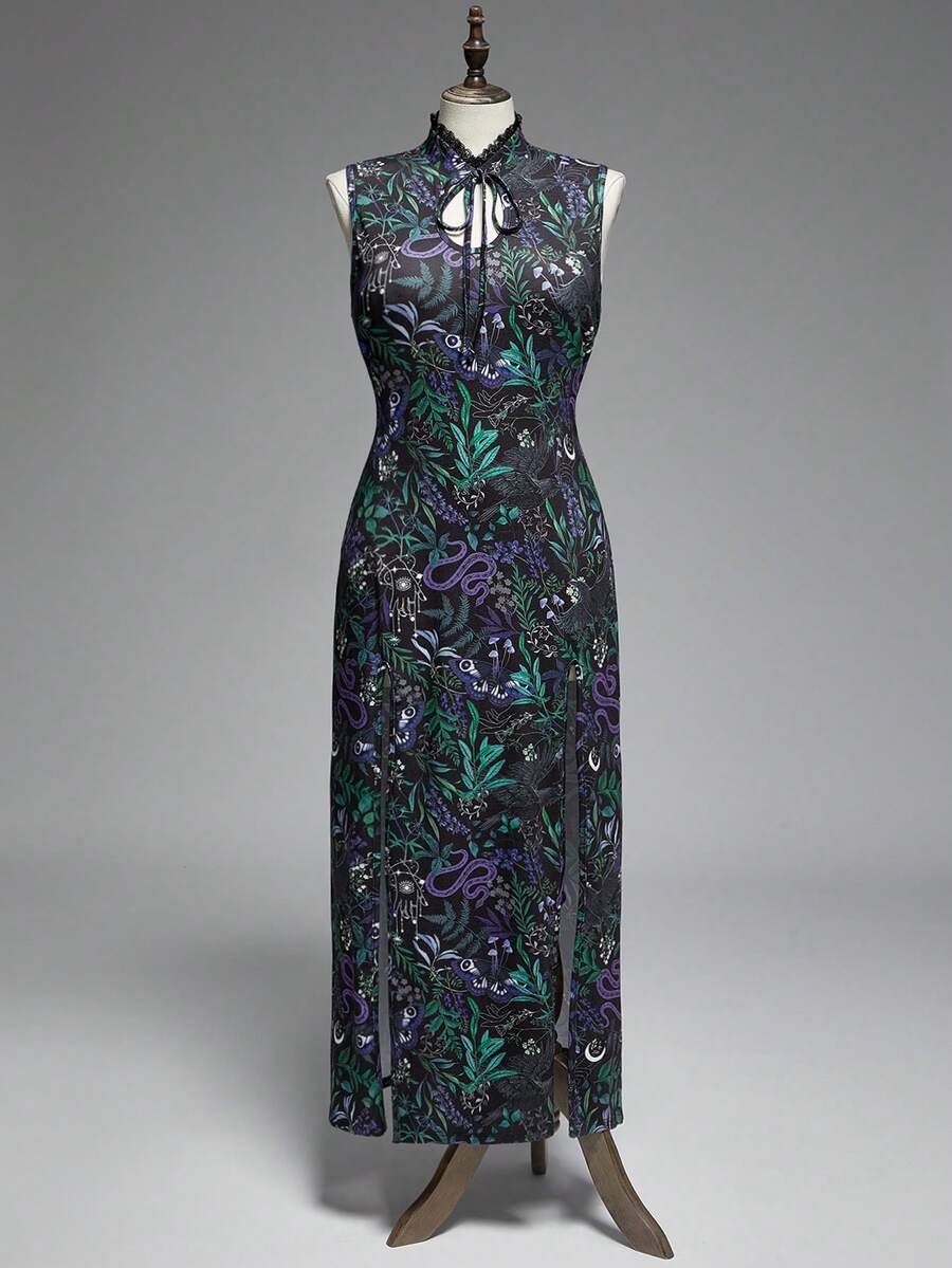 Goth Plus Size Vintage Romantic New Chinese Style Cut-Out Mysterious Dark Snake Print Dress For Women