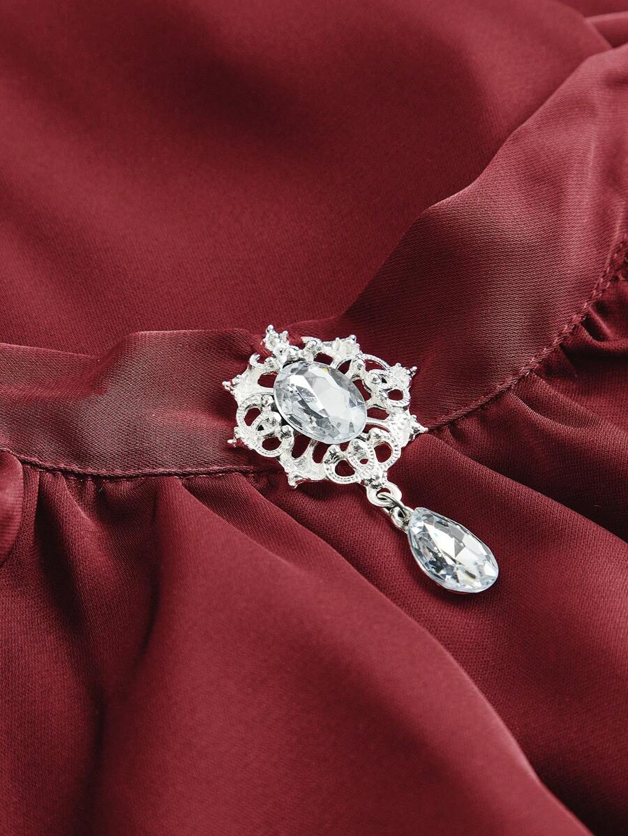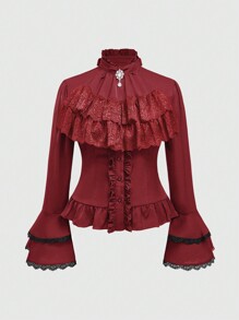 Plus Size Women Gothic Vintage Palace Style Detachable Ruffle Bow Tie Collar Baroque Crystal Pendant Flared Bell Sleeve Banded Waist Shirt