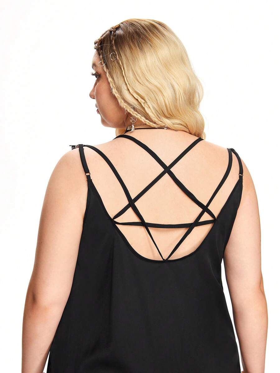 Goth Plus Size Women Halloween PUNK Suspender Five-Pointed Star Lace-Up Dress