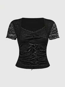 Goth Plus Size Women's Vintage Lace Bow Decor T-Shirt