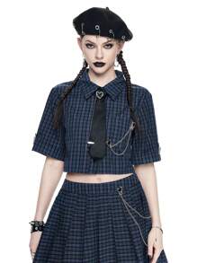 Goth Punk Rock Metal Chain Decor Plaid Cropped Shirt