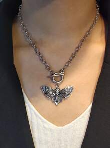 Goth Skull Detail Butterfly Charm OT Buckle Necklace