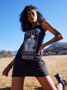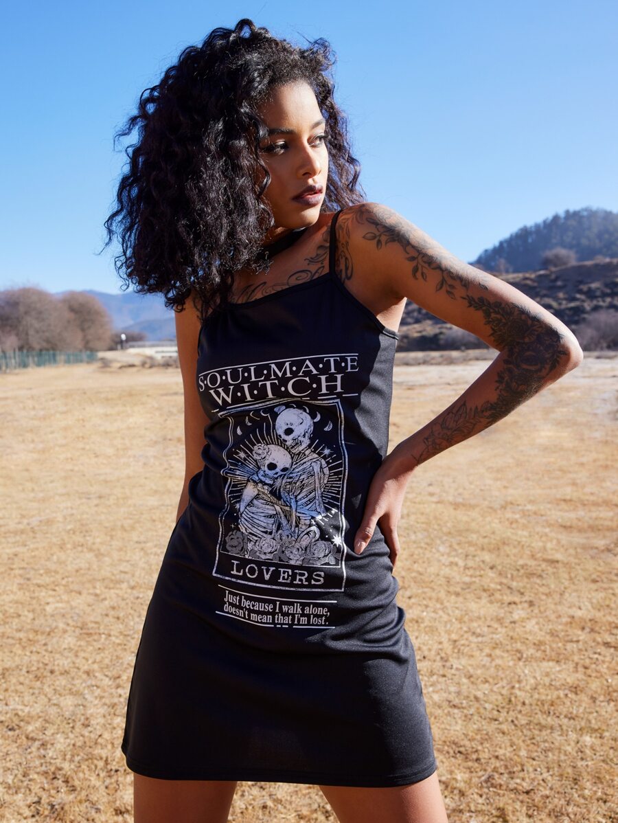 Goth Slogan Skull Graphic Cami Dress