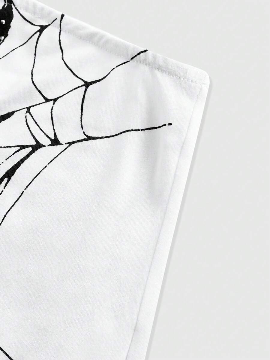 Goth Spider Rhinestone Print Fitted Strapless Top For Summer, School