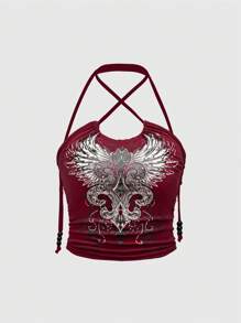 Goth Wings Print Halter Top For Summer
