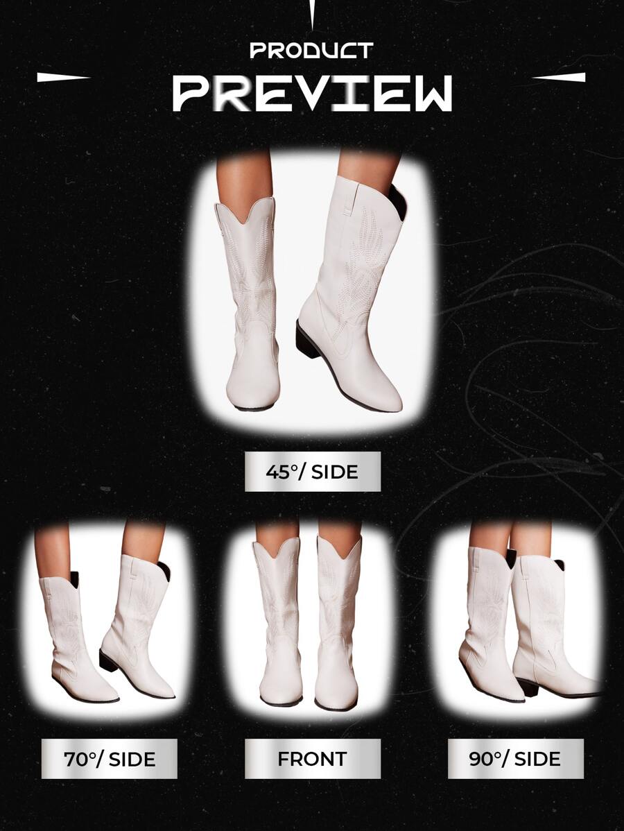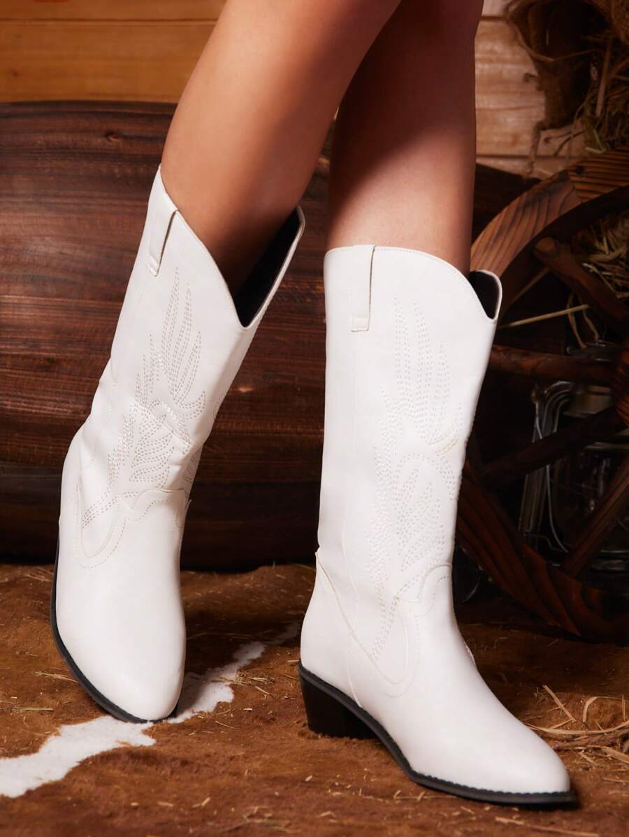 Goth Women Embroidered White Mid-Calf Cowboy Boots Spring Shoes