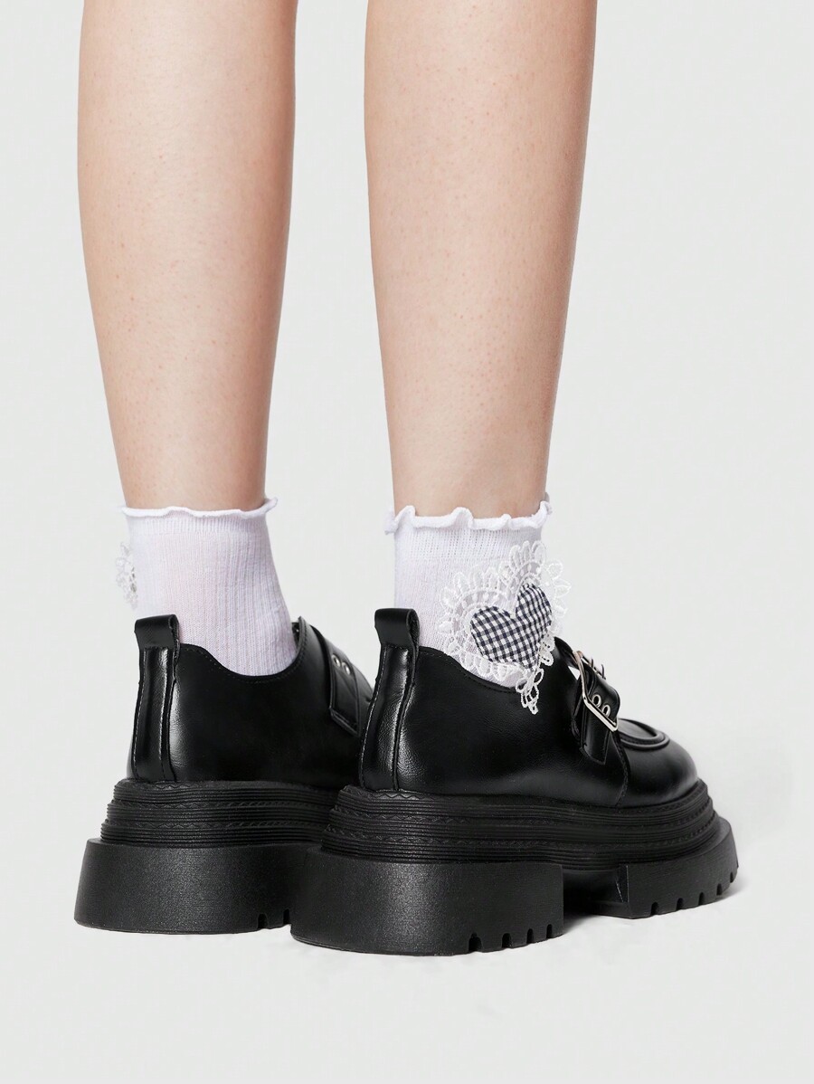Goth Women Solid Color Minimalist Thick Block Heel & Platform Slip-On Loafers, Casual Everyday Wear Spring Shoes