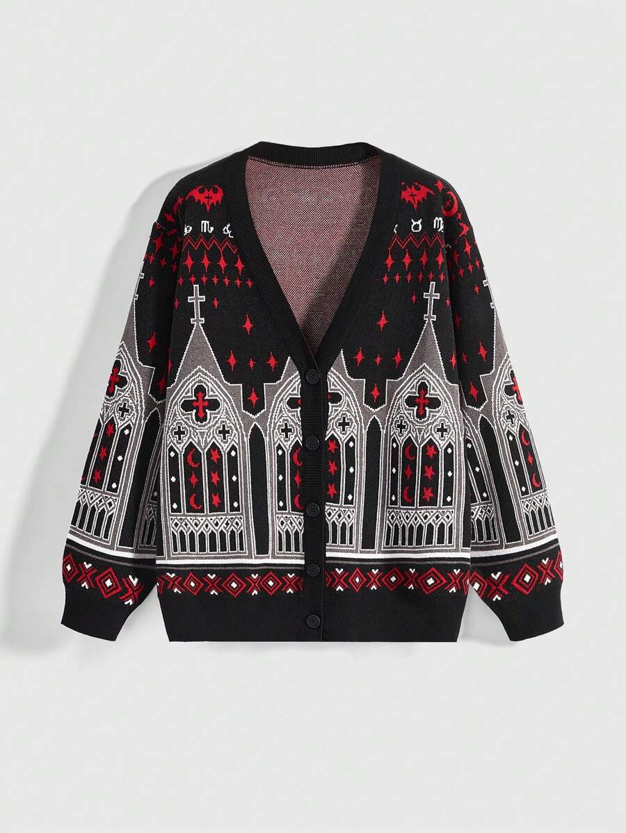 Goth Women's Casual Geometric Pattern Cardigan, Autumn/Winter