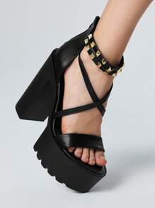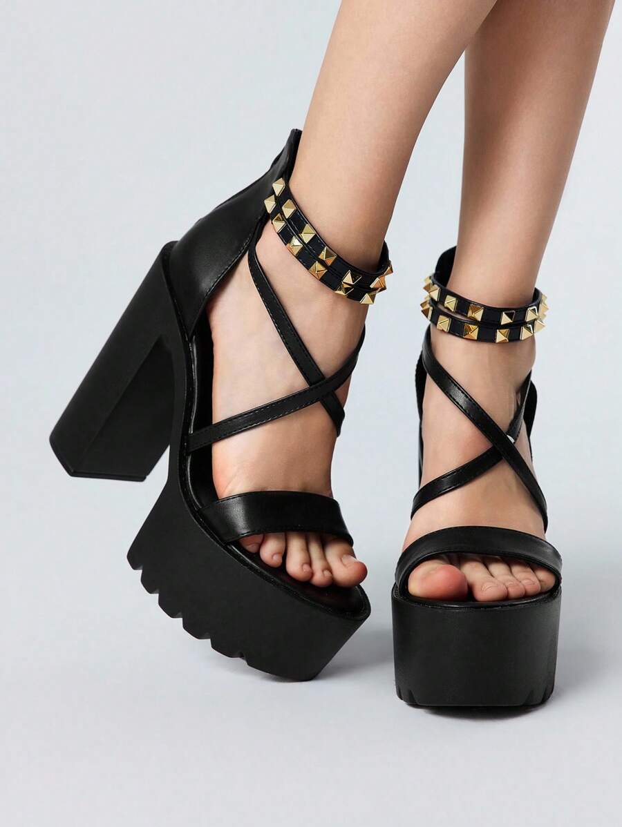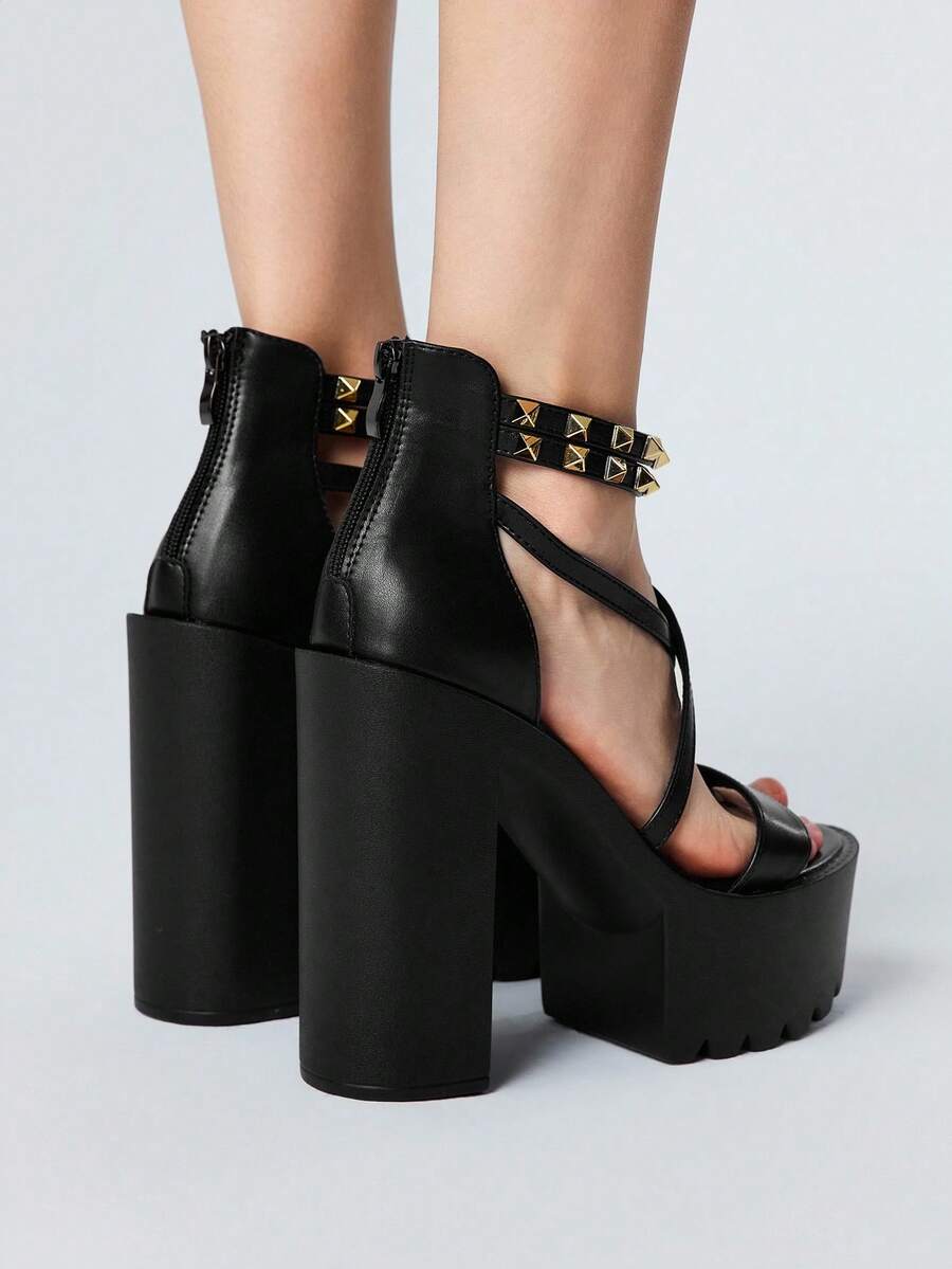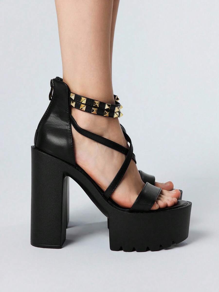 Goth Women's Fashionable Metal Rivet High Heel Sandals - Summer Punk Style Casual Open Toe High Heels - Comfortable Breathable Slip On Design