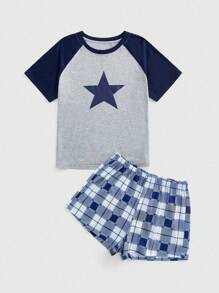 Goth Women's Pajama Set With Raglan Short Sleeve, Plaid Shorts, Star Print Sleepwear Set