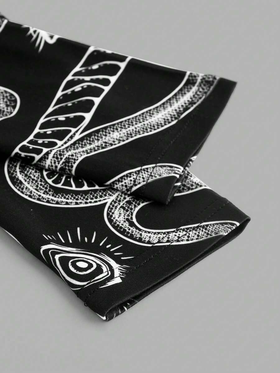 Goth Women's Snakeskin Print Turtleneck Full Printed Stretchy Tight T-shirt