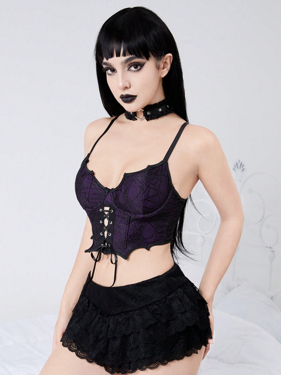 Goth Women's Underwire PU Bat Edge Bralette Top