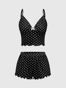 Gothic Black & White Polka Dot Tight-Fitting Spaghetti Strap Top And Shorts Co-Ord Sleepwear Set
