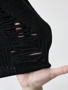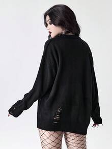 Goth Gothic Cross Jacquard Distressed Oversized Sweater