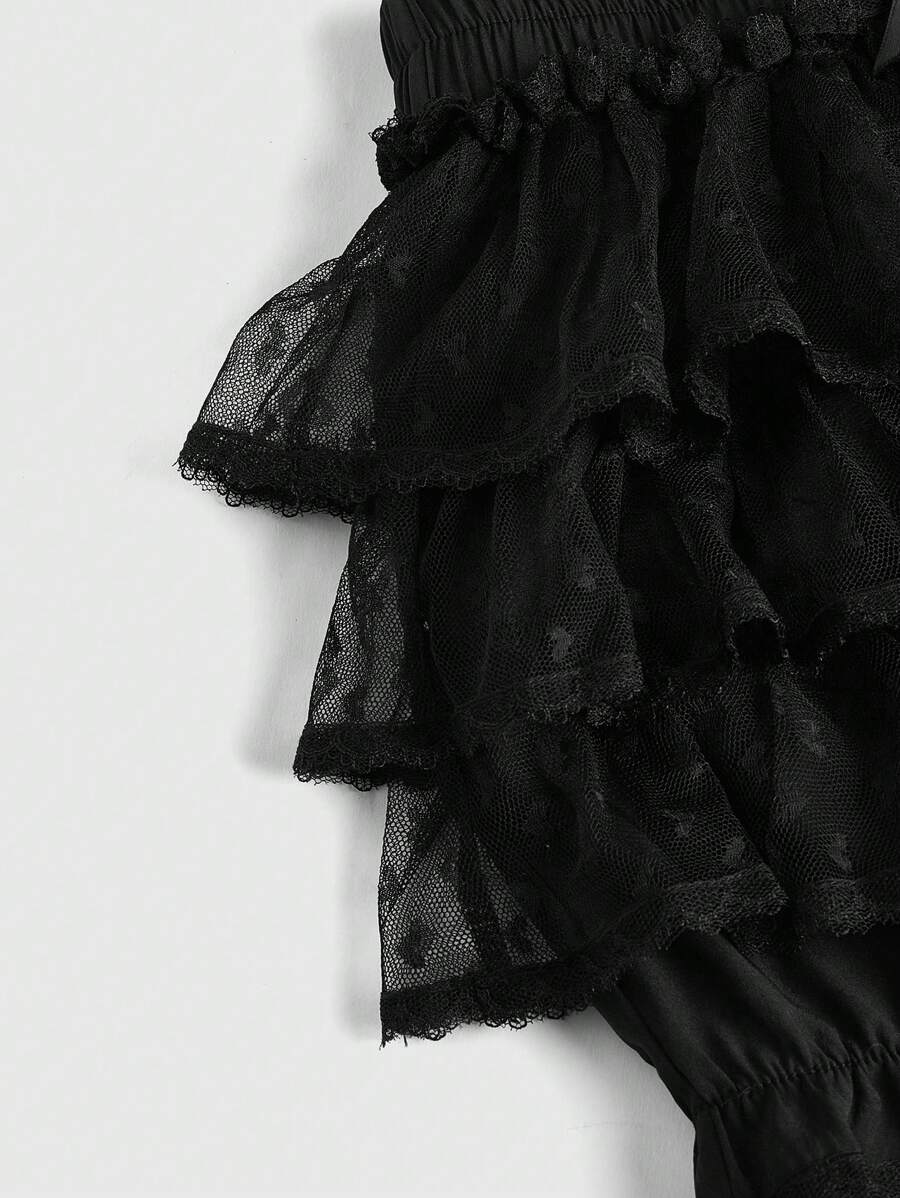 Gothic Dark Contrast Lace Bowknot Solid Pumpkin Lantern Women Shorts