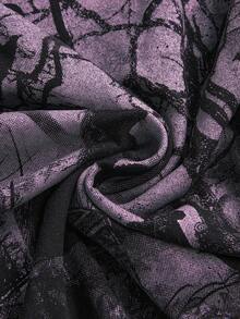 Goth Gothic Dark Forest Crow & Dead Tree Pattern Off Shoulder Strap Asymmetrical Hem Lace Patchwork Black Gothic Vine Short Sleeve Open Shoulder Women T-Shirt
