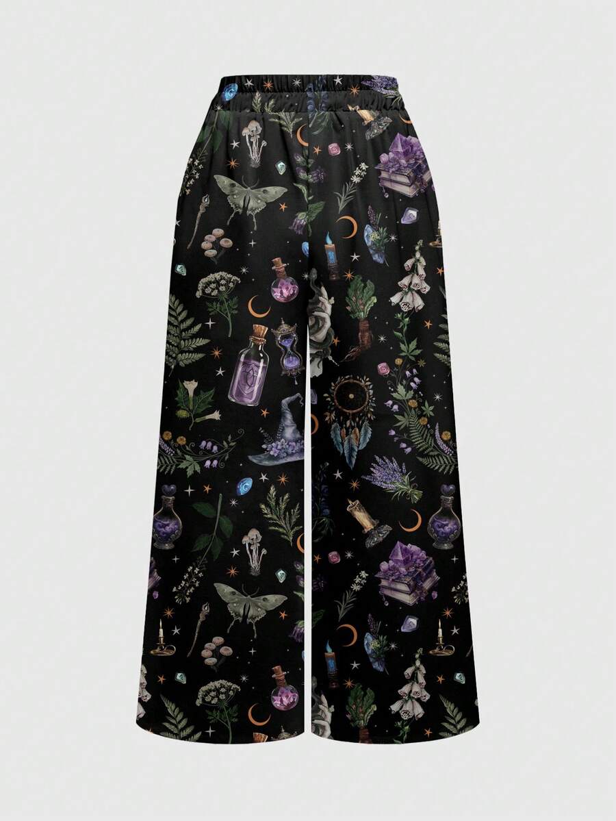 Gothic Dark Forest Magic Academy Dark Sun Moon Star Mysterious Star Women's Wide Leg Pants