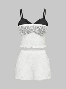 Gothic Dark Jacquard Lace Camisole Shorts Pajamas Set, Sheer
