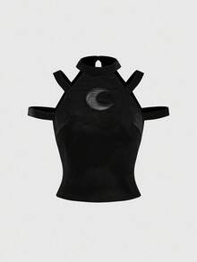 Gothic Dark Moon Hollow Velvet Tank Top For Women, Halloween