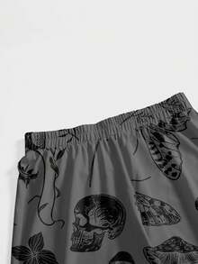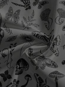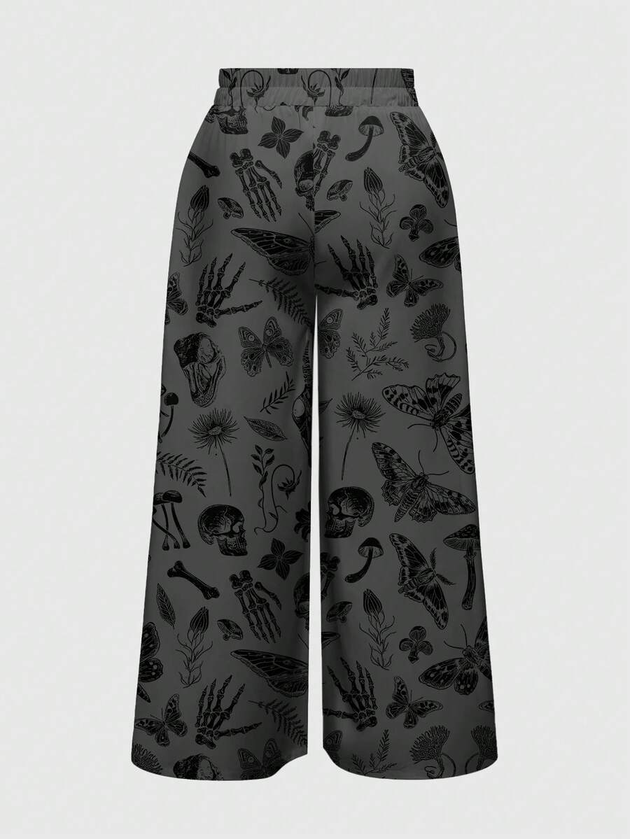 Gothic Dark Mysterious Skull, Mushroom, Butterfly, Sun, Moon, Star & Plant Print Women Pants