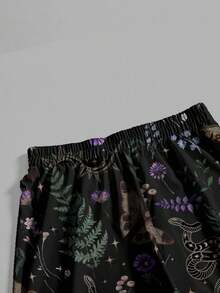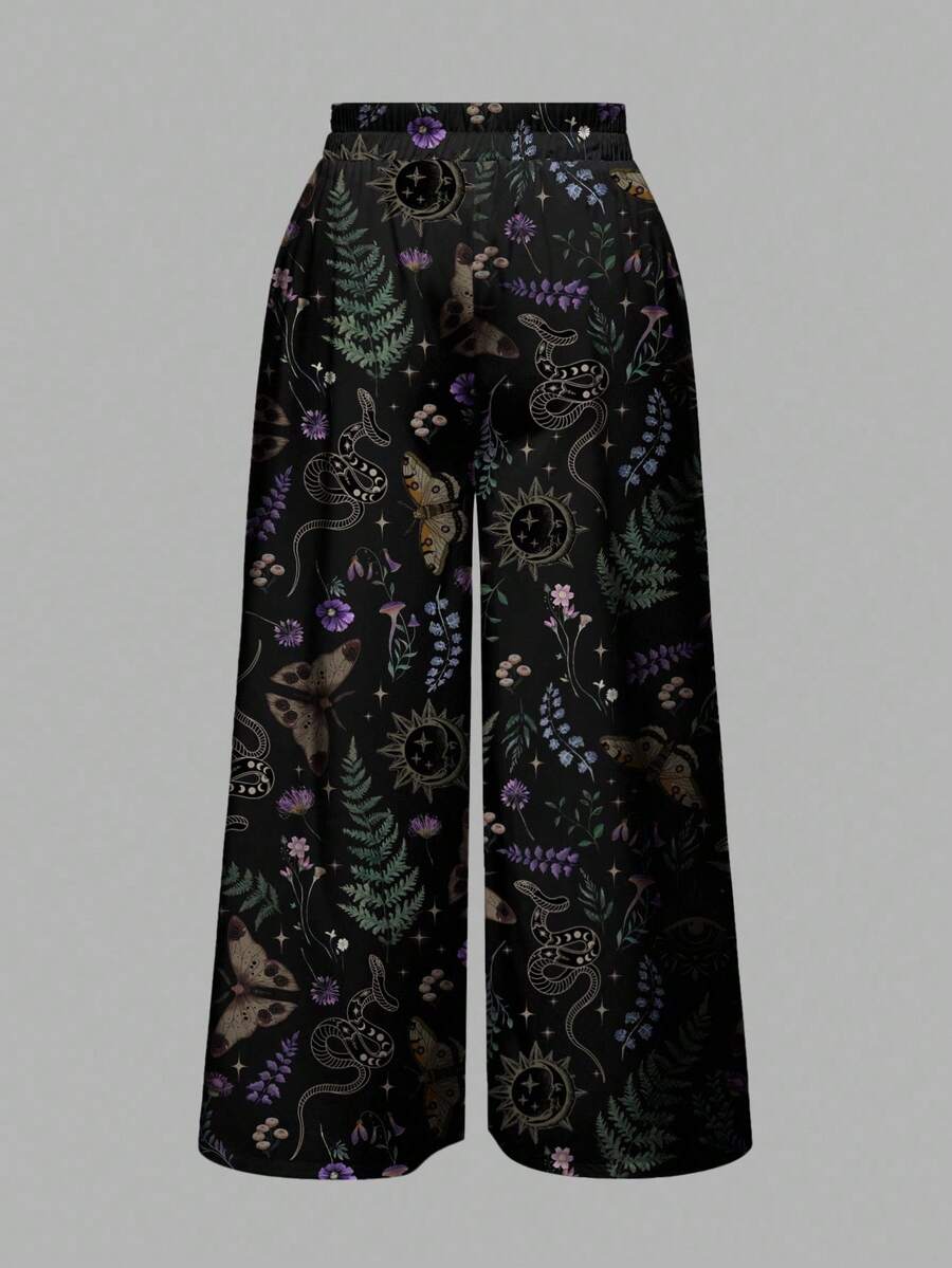 Goth Gothic Dark Mysterious Witch Moth Leaf Plant Butterfly Snake Sun Moon Star Plus Size Loose Wide Leg Allover Print Pants