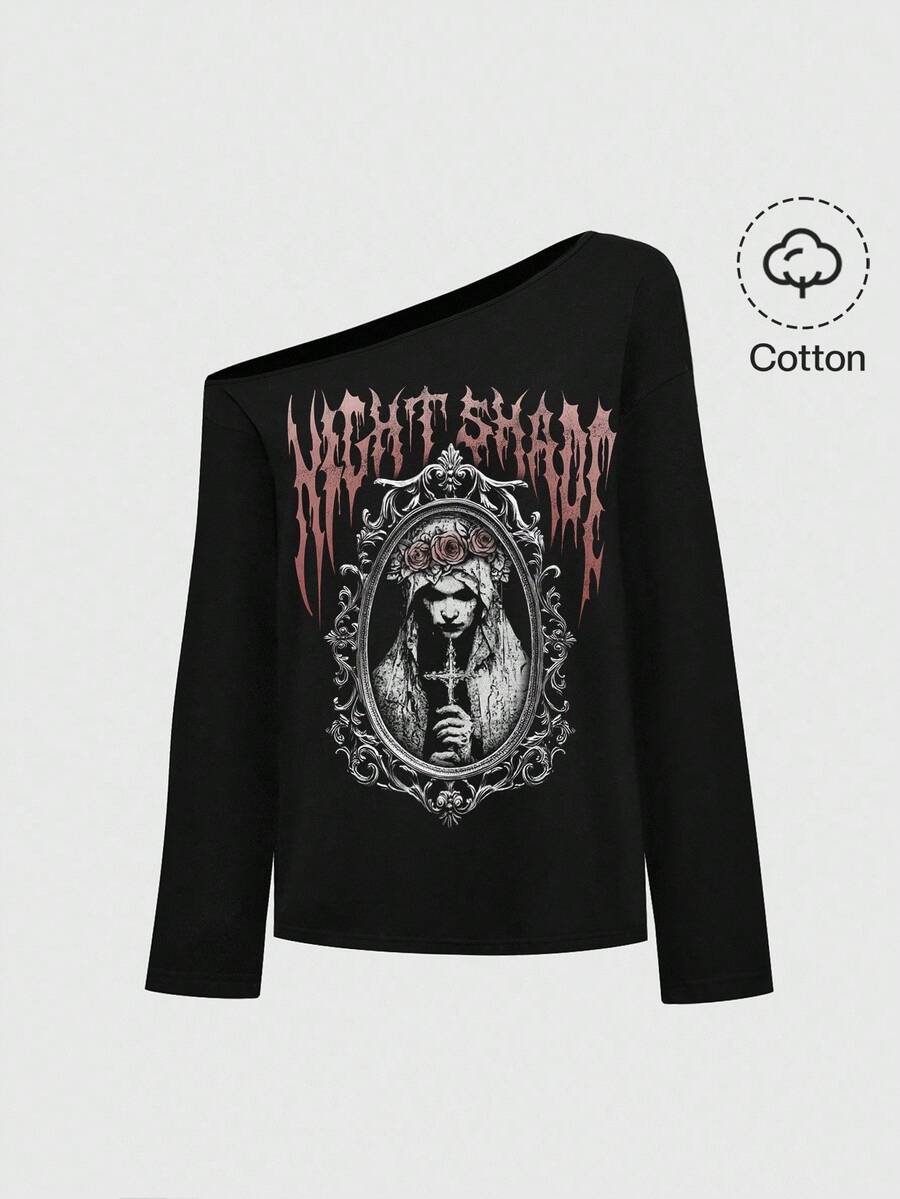 Goth Gothic Dark Palace Luxurious Slogan Bloodstain Floral Vine New Year Witch Mysterious Cotton Loose Long Sleeve T-Shirt